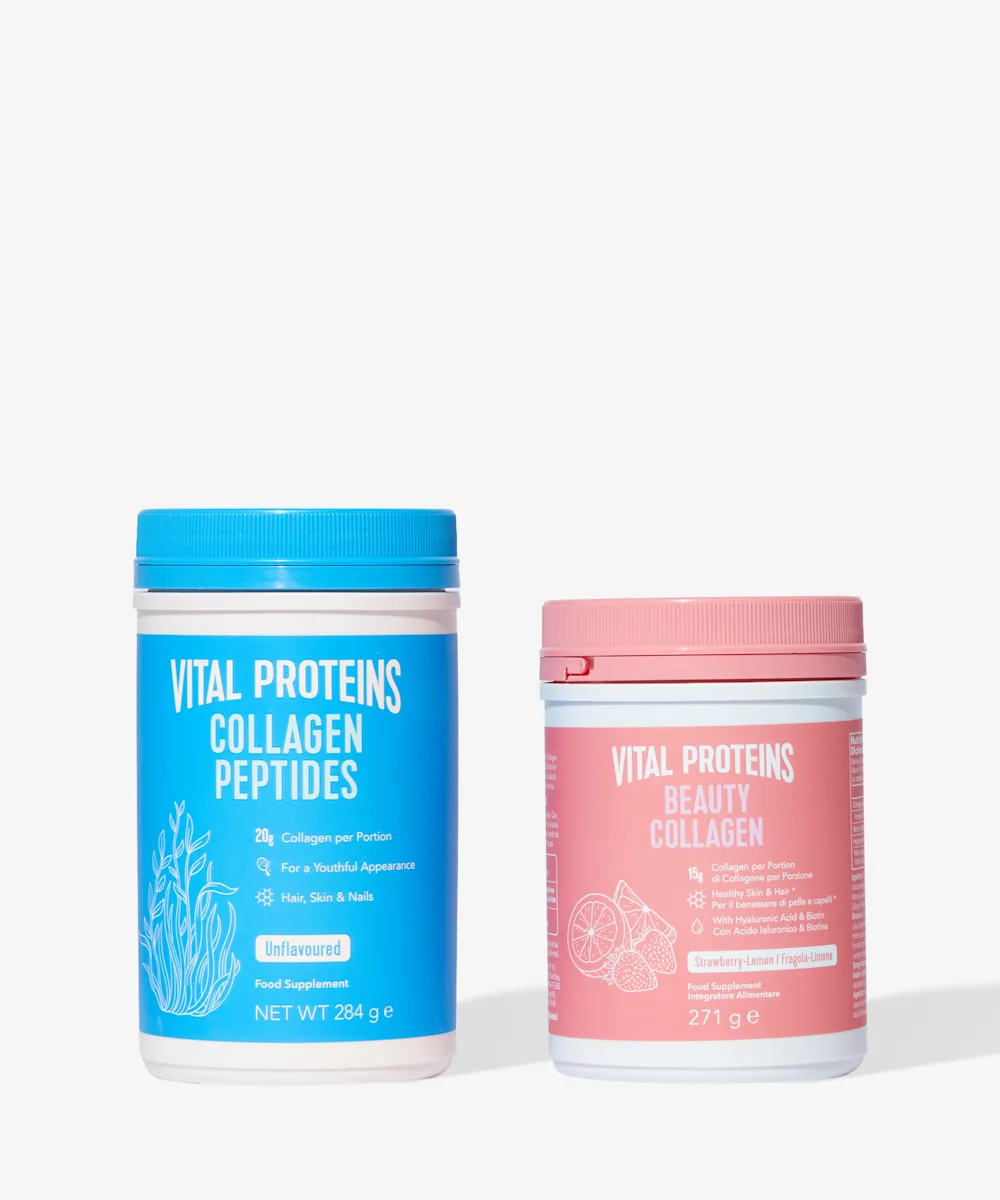 Gesunde Haut liegt immer im Trend, daher gehört The Ultimate Collagen Combo von Vital Proteins in deinen Warenkorb. Dieses Duo enthält zwei Nahrungsergänzungsmittel, die von innen heraus wirken und die Gesundheit von Haut und Haar verbessern, wenn sie in heiße oder kalte Getränke gemischt werden. Dazu gehören Collagen Peptides, ein Ergänzungspulver mit Kollagenpeptiden, und Beauty Collagen, ein Ergänzungspulver für die Gesundheit von Haaren und Nägeln. Ein besseres Duo findest du nirgendwo!