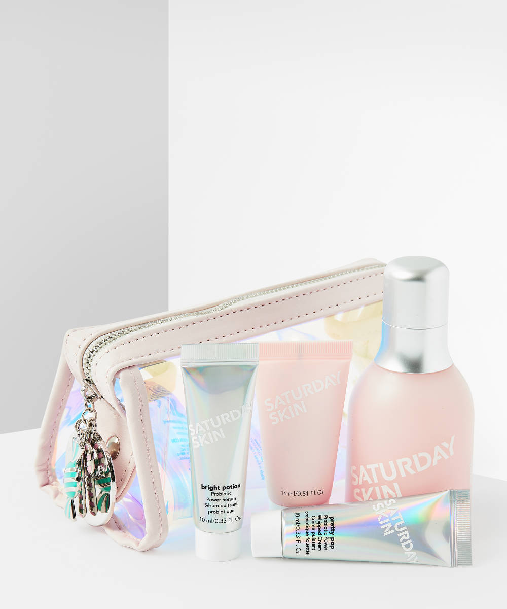 Get that Christmas glow for your skin with the Saturday Skin Holiday Eye Candy set. Containing some of our Saturday Skin faves, including Wide Awake Brightening Eye Cream, Rub-A-Dub Refining Peel Gel, Bright Portion Probiotic Power Serum and Pretty Pop Probiotic Powder Cream, this handy travel sized set is perfect whether you’re at home or on-the-go this Christmas. Plus, it all comes house in a holographic bag with a Christmas-themed charm. We love it.