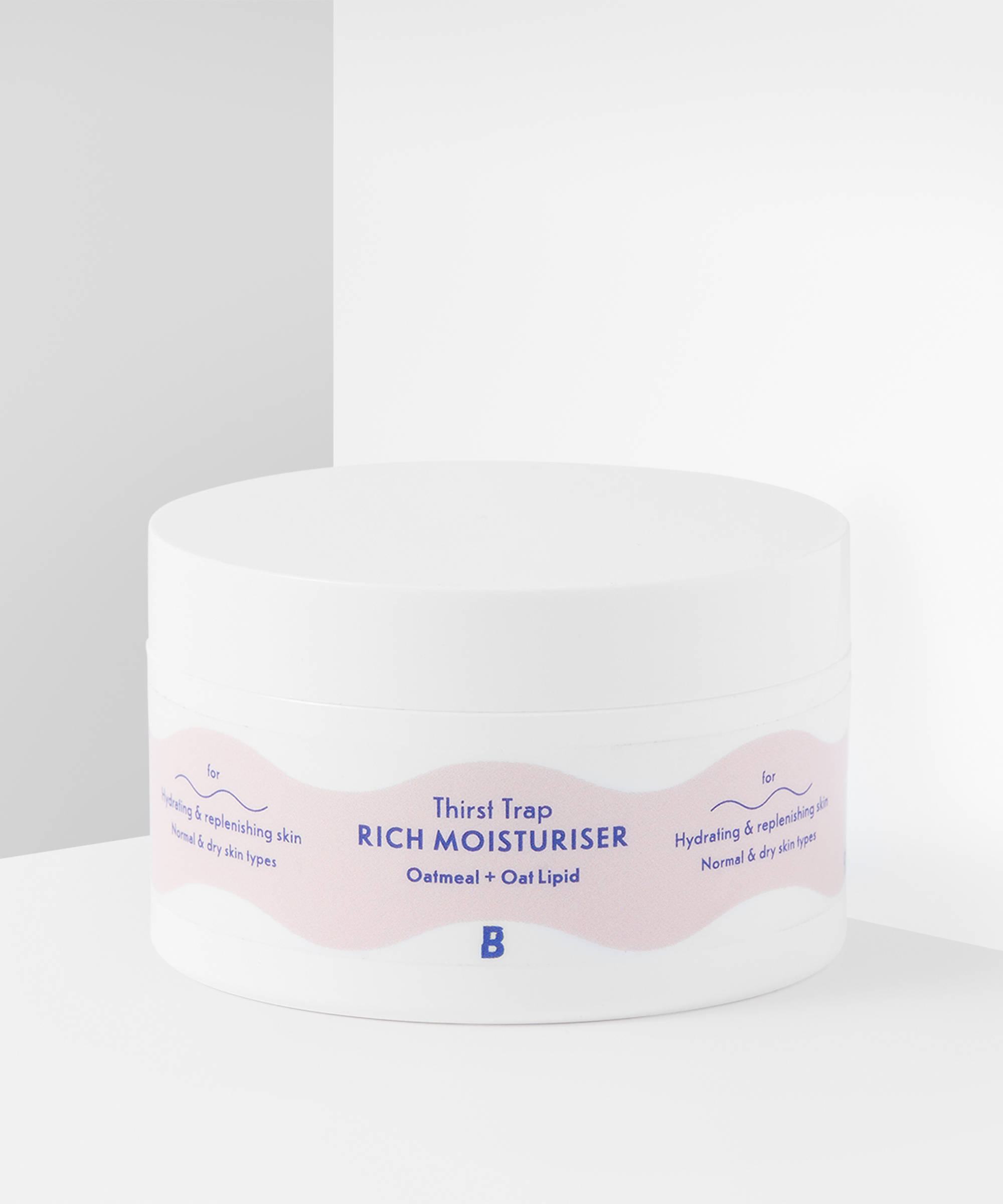 Our Thirst Trap Rich Moisturiser contains oat lipids and squalane to give a seriously hydrating and replenishing formula that still feels cushion-y and lightweight.