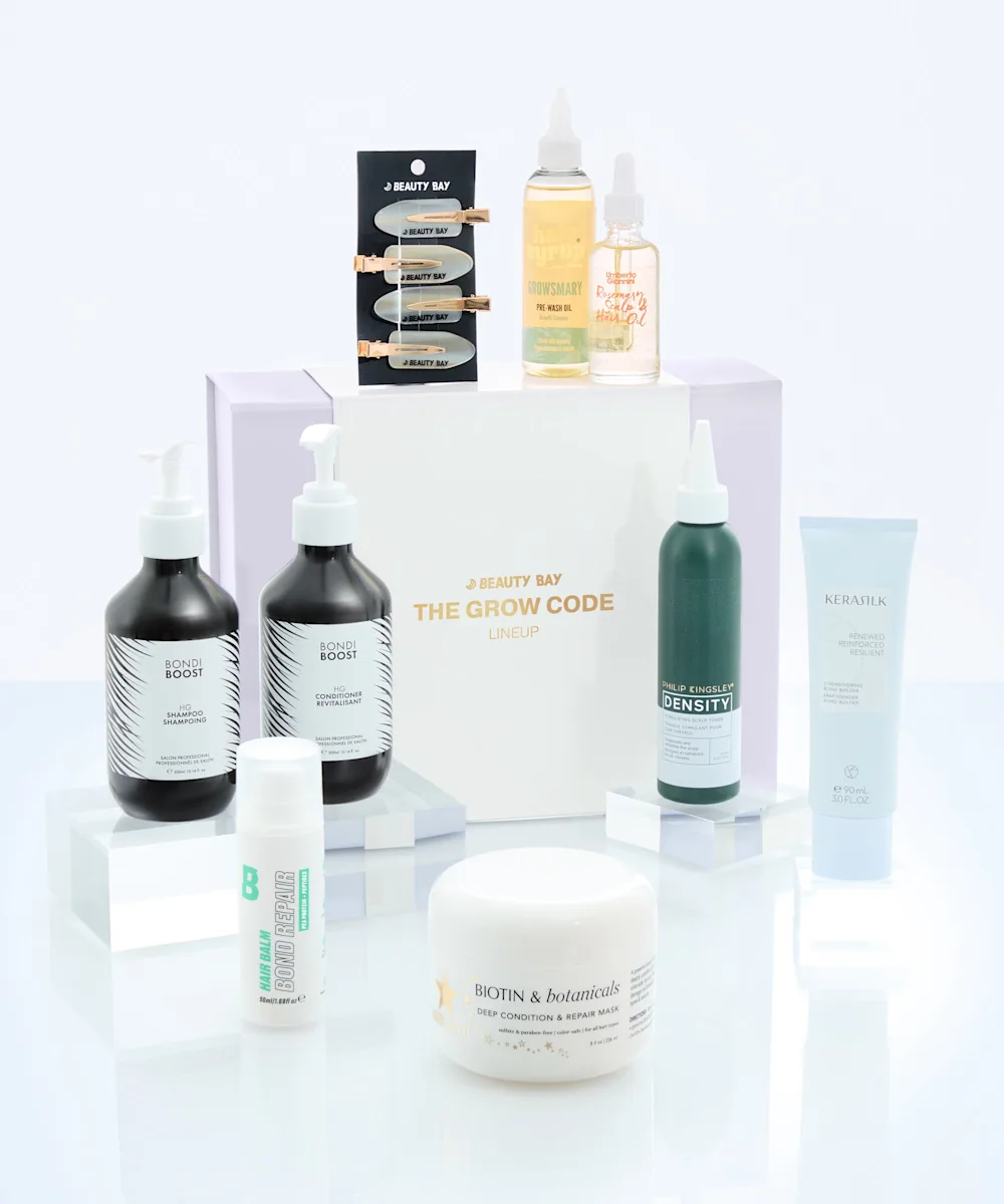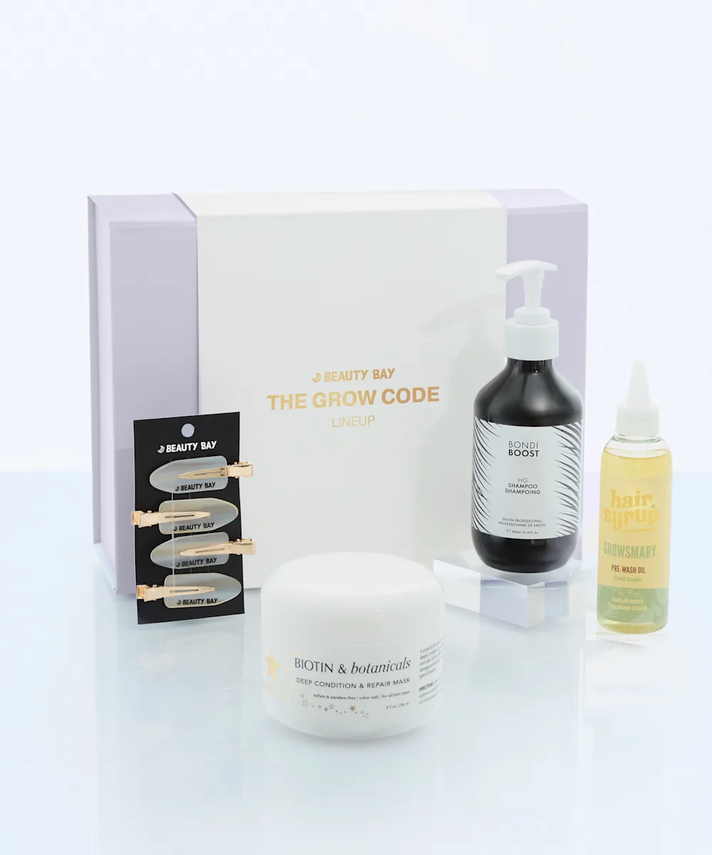 Retrouvez des cheveux plus forts, plus sains et plus volumineux avec la Gamme Grow Code de BEAUTY BAY. Cette collection en édition limitée de neuf soins puissants est le cadeau idéal pour tous les fans de soins capillaires. Elle contient tout le nécessaire pour réparer, renforcer et nourrir les cheveux des racines aux pointes. Vous y trouverez des produits fortifiants, des soins du cuir chevelu, ainsi que des shampoings et après-shampoings qui stimulent la pousse. Une routine qui vaut vraiment le détour ! Économisez 71 % sur des marques prestigieuses comme Philip Kingsley, Kersailk et Hair Syrup. Offrez le cadeau d’une chevelure sublime.