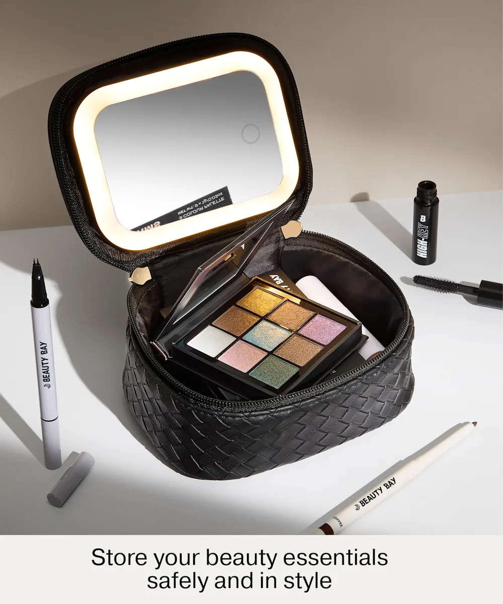 Store your beauty essentials safely and in style with the LED Mirror Mini Travel Beauty Bag from By BEAUTY BAY. Inside, you’ll find a detachable, rechargeable LED mirror, making it easy to apply or touch up your makeup wherever your plans take you. Made from black woven PU with gold hardware, this structured case keeps your must-have products secure and organised. With custom ‘B’-shaped zip pulls and a gold embossed ‘B’ logo detailing, it combines functionality with a sleek, ultra-convenient design.