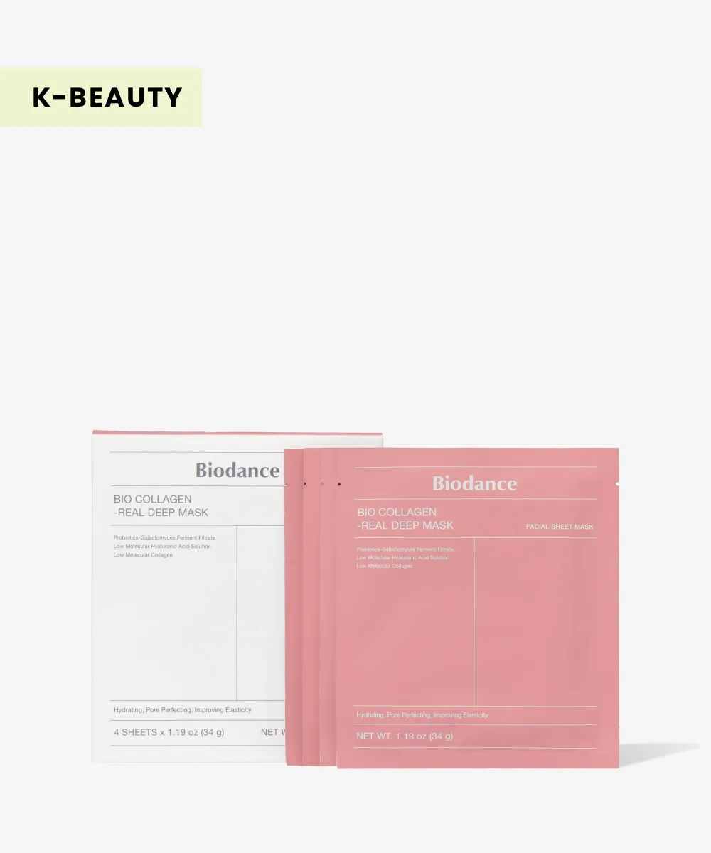 Une peau saine et hydratée = une peau heureuse, alors optez pour le lot de 4 Masques Biodance Bio-Collagen Real Deep. Enrichis en acide oligo-hyaluronique, ces masques pénètrent profondément la peau pour offrir une hydratation intense et stimuler la rétention d'eau. Contenant du collagène moléculaire ultra-faible, ils contribuent à corriger l'apparence des pores dilatés, améliorent l'élasticité et atténuent sensiblement les rides et ridules. Grâce à trois probiotiques, ces masques hydratants renforcent la barrière cutanée pour lutter contre le vieillissement et augmenter la résistance de la peau, lui conférant ainsi un teint plus ferme et plus jeune. Formulés sans ingrédients agressifs ni allergènes, ces masques hydrogel hypoallergéniques nourrissent en toute sécurité les peaux sensibles sans irritation. Ils cochent vraiment toutes les cases.