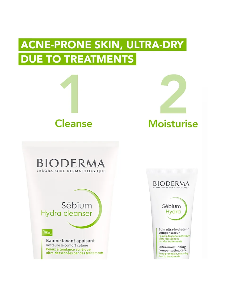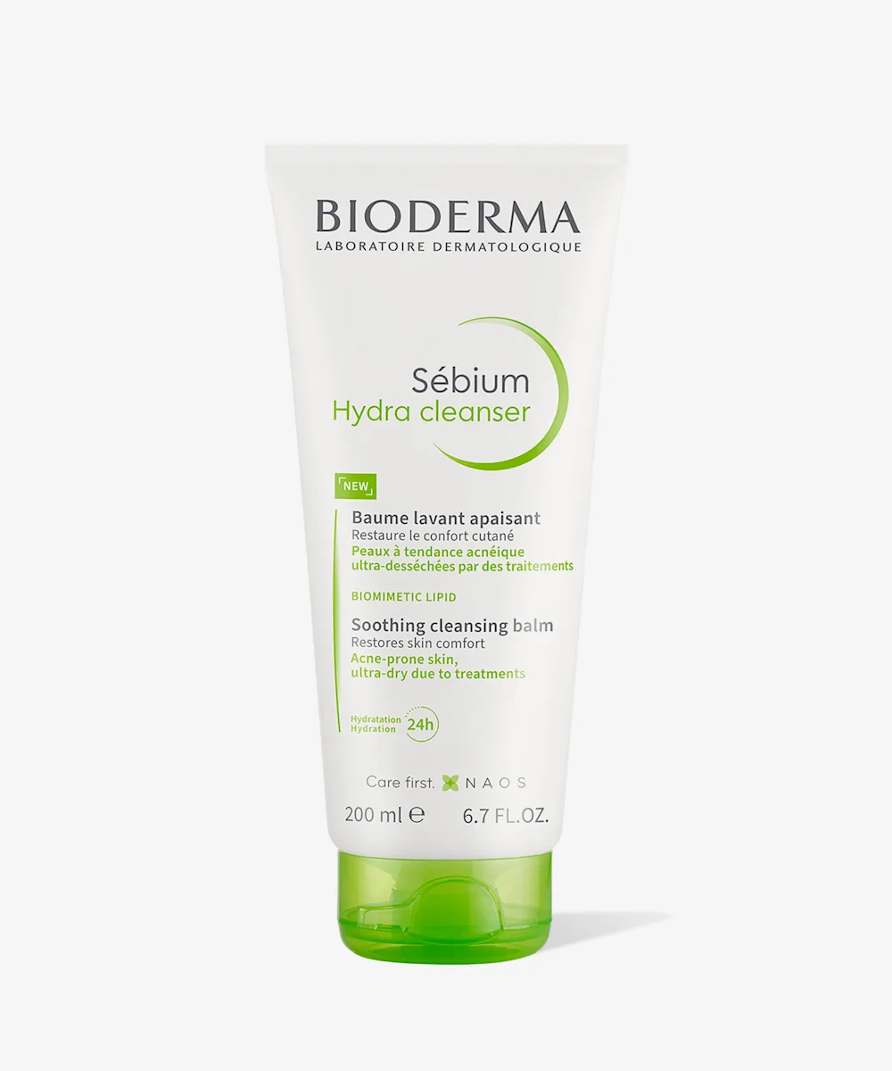 - Nettoyez la peau avec le nettoyant Sébium Hydra.