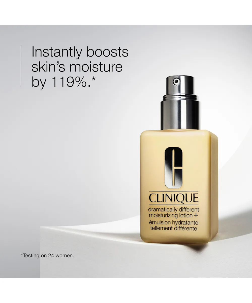 Quench skin thirst wherever you are with the Clinique Dramatically Different™ Moisturiser Gift Set. Featuring a jumbo-sized, deeply hydrating moisturiser and its mini-me, this fast-absorbing formula uses a blend of barley, sunflower, and cucumber to provide effective moisture and nourishment. Enriched with glycerin and hyaluronic acid, this moisturiser delivers eight hours of moisture into the skin, helping to balance and strengthen the skin’s natural moisture barrier. The results? A fresh, glowing complexion plump with hydration.