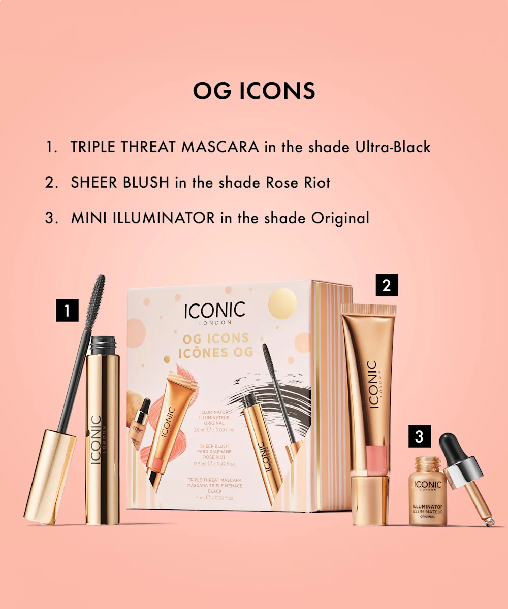 Obtenez un look vraiment ICONIC avec le coffret cadeau ICONIC London OG Icons, le trio ultime pour obtenir une peau éclatante, des joues rosées et des cils denses. Que vous soyez une débutante en maquillage ou une fan d'ICONIC London, ce coffret est un must-have pour transformer entièrement votre routine de maquillage. Parfaits pour initier vos copines aux essentiels du maquillage ou compléter votre propre réserve, ces produits sont le secret d'un look glamour subtil.