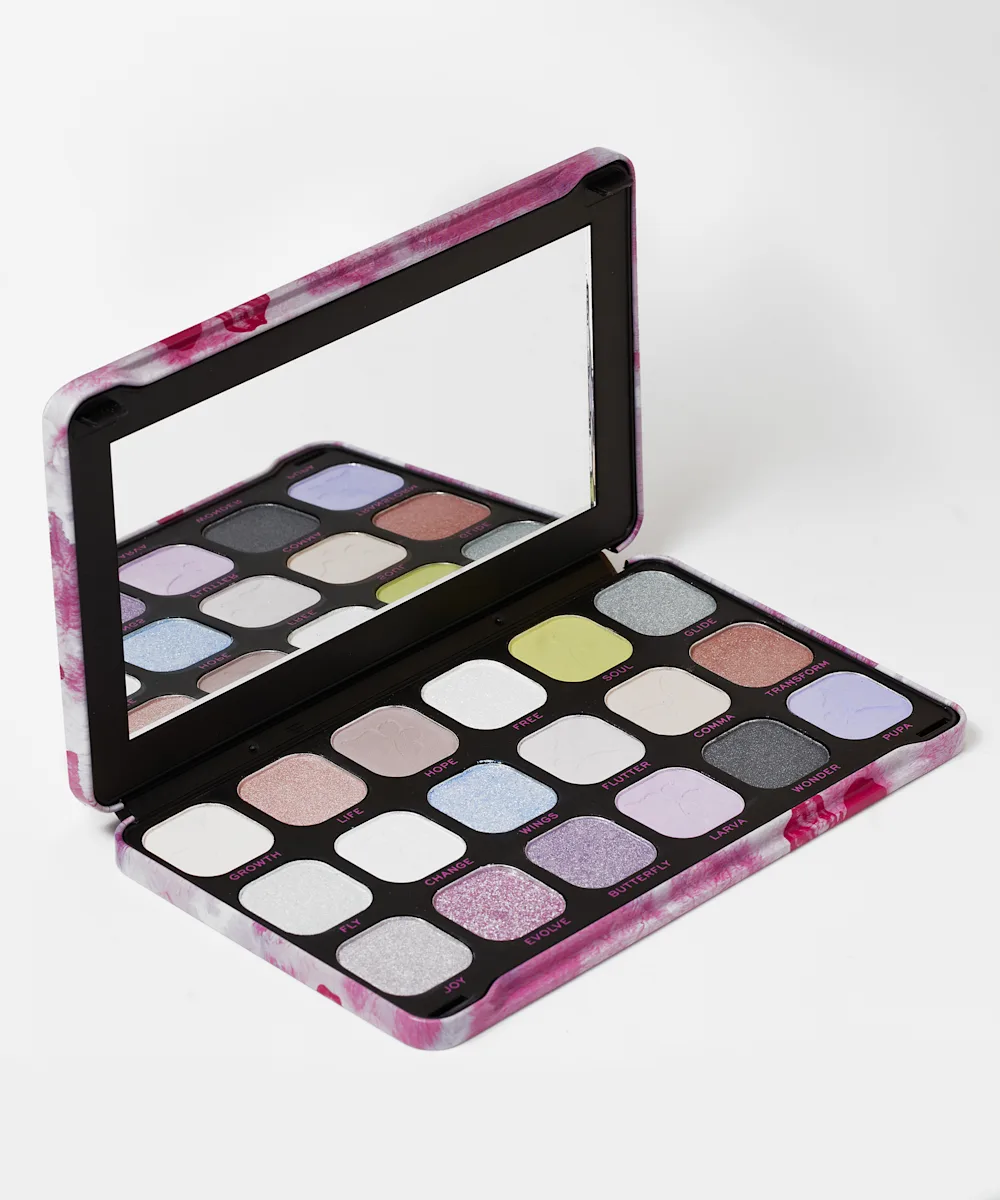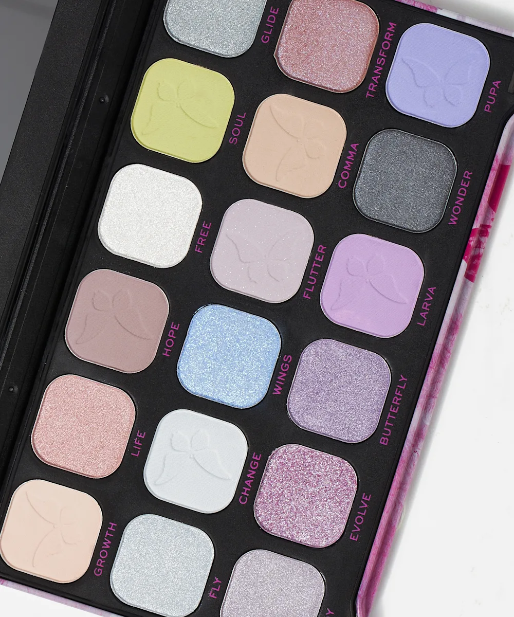 Adoptez un regard hypnotisant grâce à la palette yeux Butterfly Forever Flawless de Revolution. Composée de 18 teintes douces et éthérées, cette palette trouvera naturellement sa place sur votre étagère. Vous allez craquer pour leur sélection de nuances tendres de rose, de lilas et de bleu au fini mat ou scintillant.