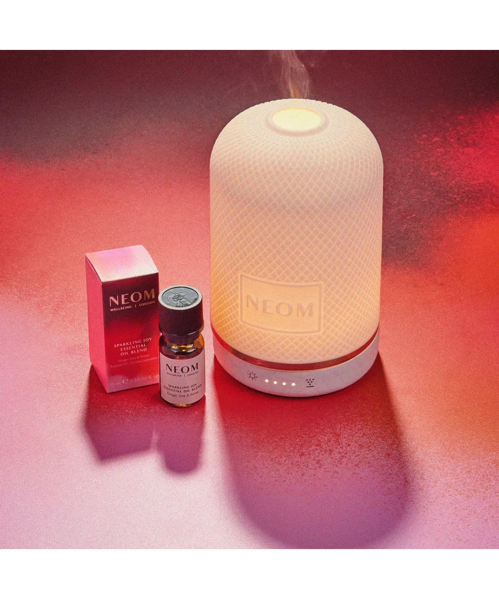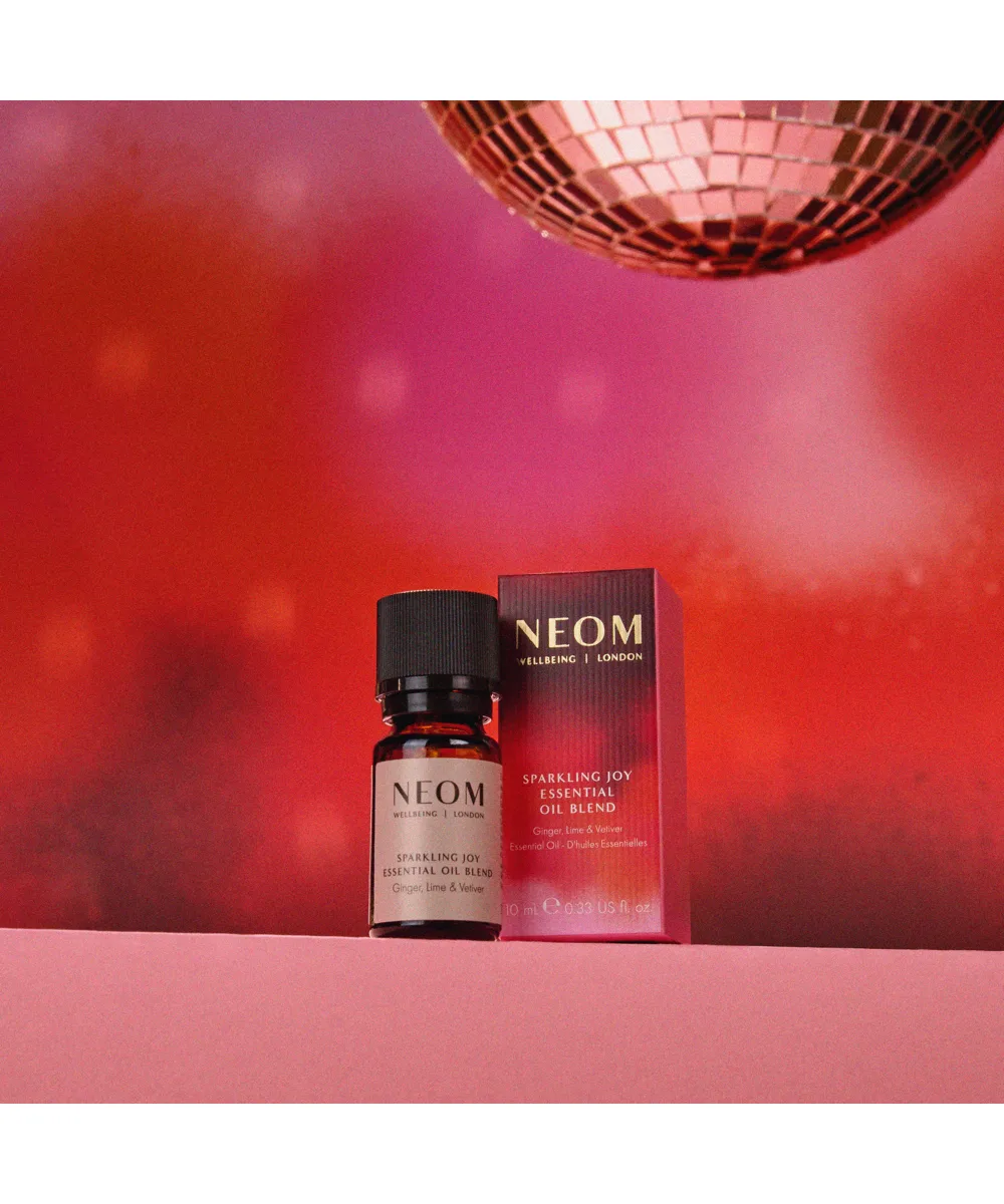 Fill your home with the warming scent of this NEOM Sparkling Joy Essential Oil Blend. It features a refreshing blend of essential oils including ginger, lime and vetiver. Feel the festive spirit with this zingy, spicy and energising fragrance which helps invigorate the senses and leaves you feeling ready to take on the day. This 100% natural fragrance will melt away any stress and get that festive spirit blazing.