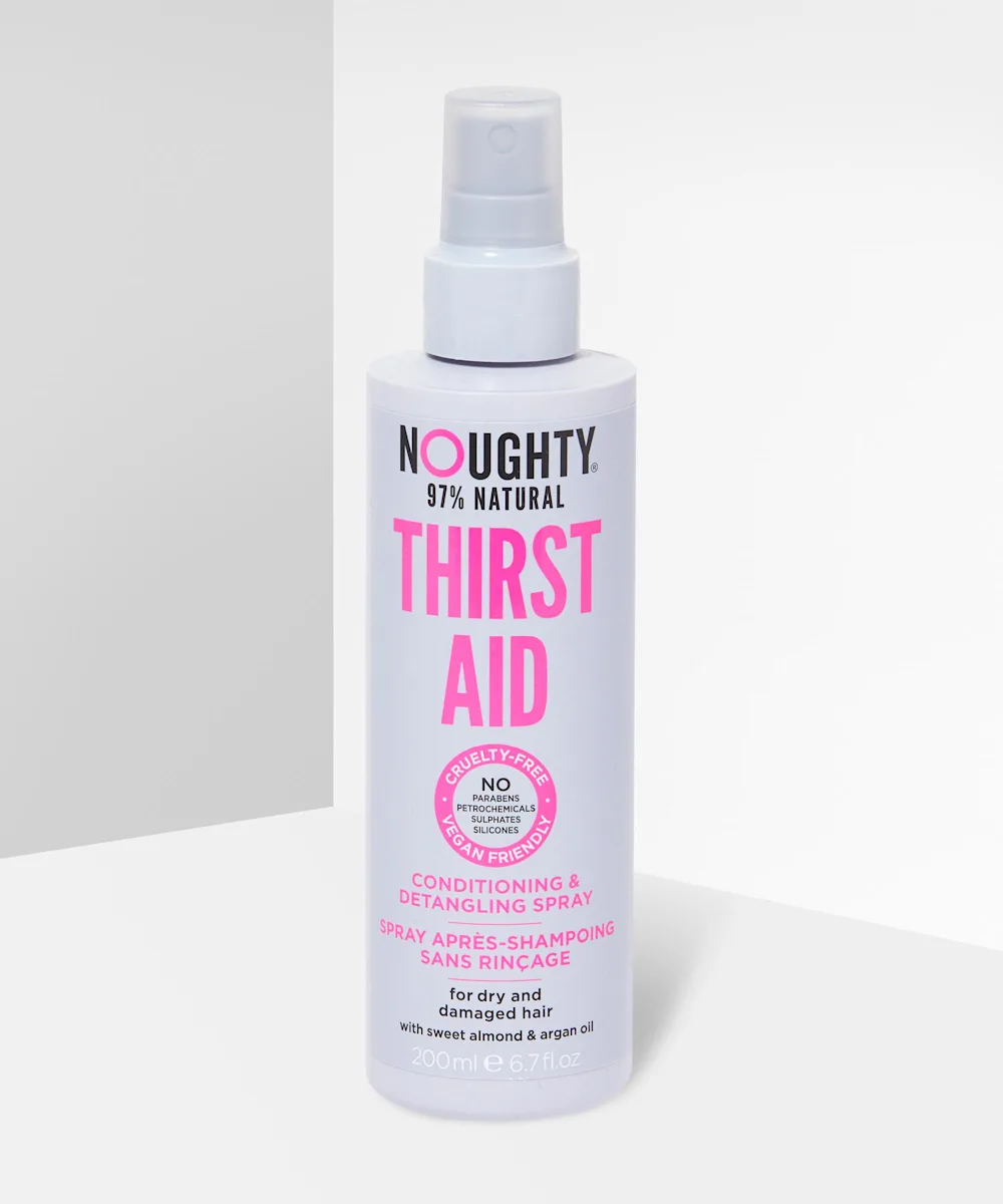 Venez à bout de la sécheresse, des dommages, des pointes fourchues et des nœuds grâce au spray après-shampooing démêlant To The Rescue Thirst Aid de Noughty. Sans silicone et renfermant 97% d'ingrédients désaltérants naturels, cette formule légère sans rinçage exploite de l'extrait d'amande douce et du beurre de karité pour hydrater vos boucles. Transformez vos nœuds en une luxuriante crinière domptée en une seule étape.