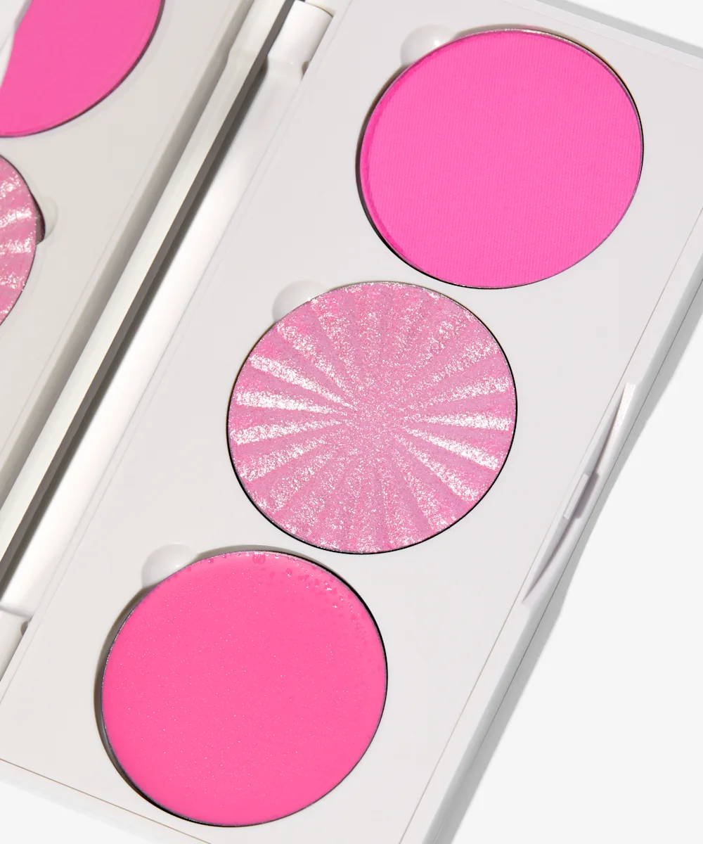 Emmenez votre blush vers des régions stratosphériques grâce à la grande palette Cotton Candy Skies d’Ofra. Cette palette a pensé à tout. Elle réunit trois blushs qui accomplissent des miracles, chacun à sa manière, grâce à leurs consistances différentes ; un blush onctueux dans la teinte Dreamy, qui s’estompe sans effort sur la peau pour la parer d’un voile de couleur naturel et lumineux ; et Pink Clouds, un blush en poudre, vous permet de réaliser un baking ou de créer un fini délicat et scintillant pour obtenir un look glamour doux. Complétez le tout avec Sugar Rush, un hybride qui fait à la fois office de blush et d’highlighter, qui garantit de conférer un éclat enchanteur et radieux à votre peau.