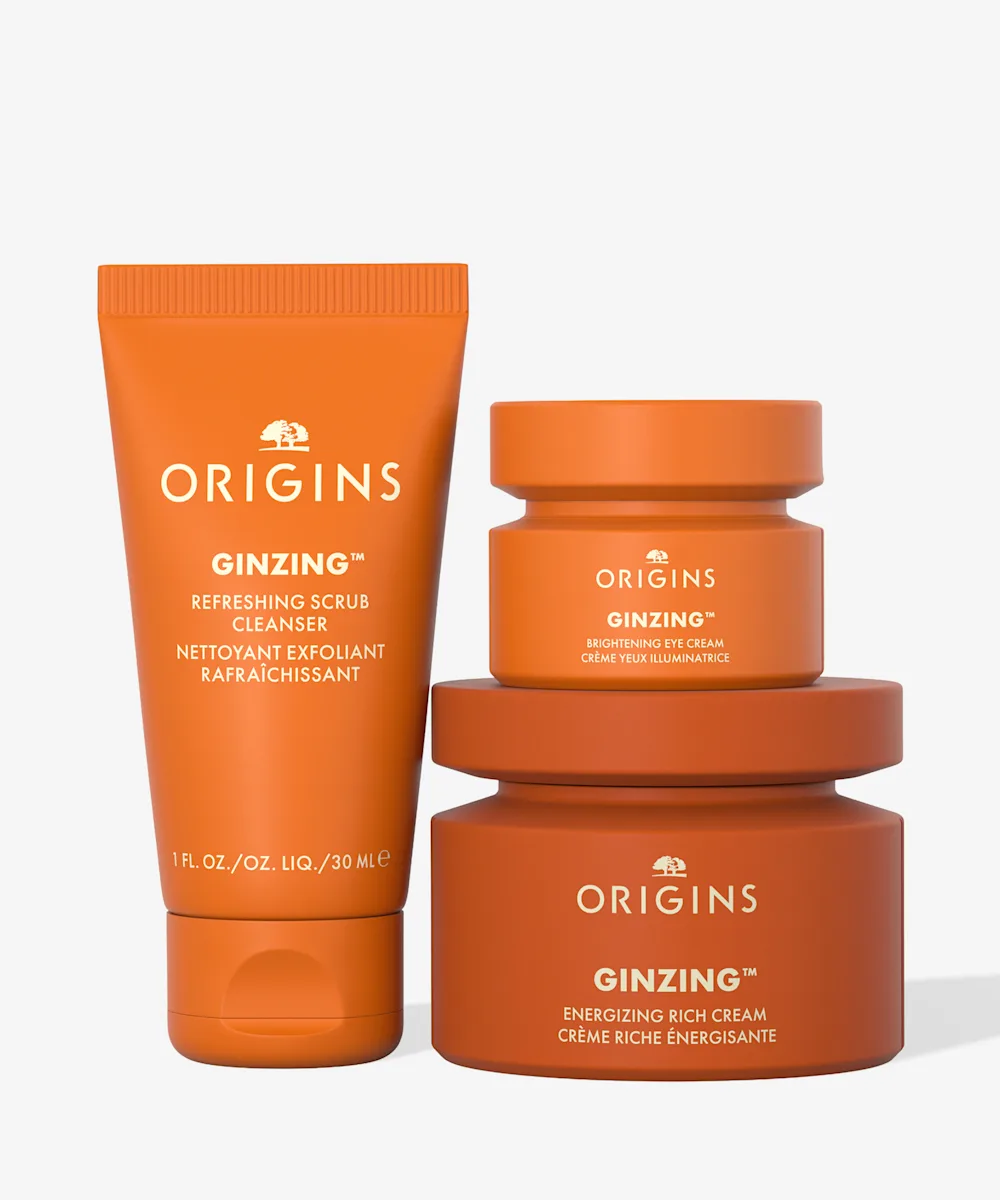 Give them glowing skin with the Origins Ginzing ™ Glowing Essentials. This is your glow-to skincare set for radiant skin, featuring the GinZing™ Refreshing Scrub Cleanser that gently exfoliates, the GinZing™ Ultra-Hydrating Energy-Boosting Cream that delivers instant radiance and 72-hour hydration, and the GinZing™ #1 Brightening Eye Cream that reduces the look of puffiness and brightens the appearance of undereye circles.