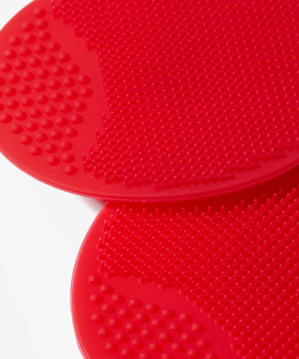 Un duo composé d’une tasse à café réutilisable et de disques nettoyants en silicone.