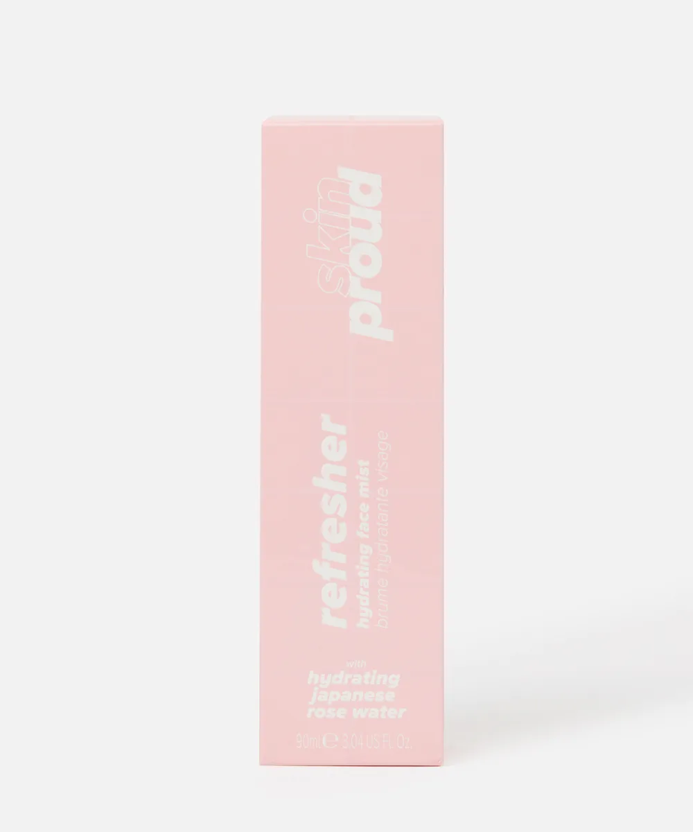 Apportez le coup de pouce dont elle a besoin tout au long de la journée à votre peau en lui offrant la brume hydratante pour le visage Refresher de Skin Proud. Enrichie d'un complexe rafraîchissant de rêve à base d'eau de rose japonaise, d'aloe vera et d'extrait d'hamamélis, cette brume visage contribue à hydrater votre peau quand elle en a le plus besoin. Dotée d’un délicieux parfum d'ananas, elle permettra à votre peau de se sentir instantanément éveillée, fraîche et saine à chaque vaporisation.