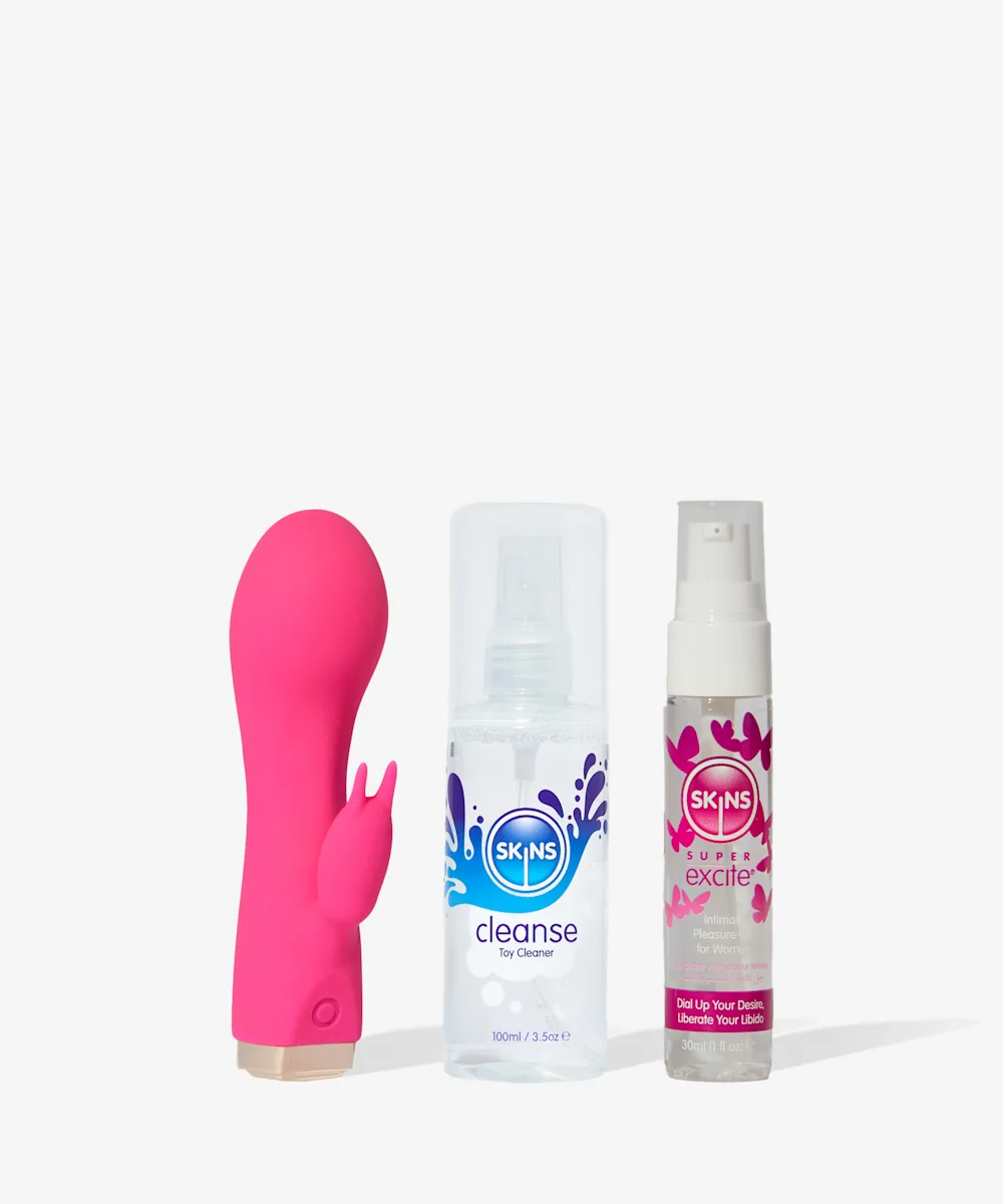 Faites mouche à tous les coups grâce au coffret Premium Pleasure de Skins. Il réunit tous les produits nécessaires pour pimenter vos préliminaires ou séances de masturbation torrides tout en vous garantissant des conditions d’hygiène optimales. Ceux-ci comprennent un nettoyant pour sex toys, un gel stimulant et un mini lapin vibrant. Sélectionnez-le et vous allez l’adorer.