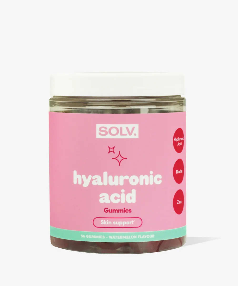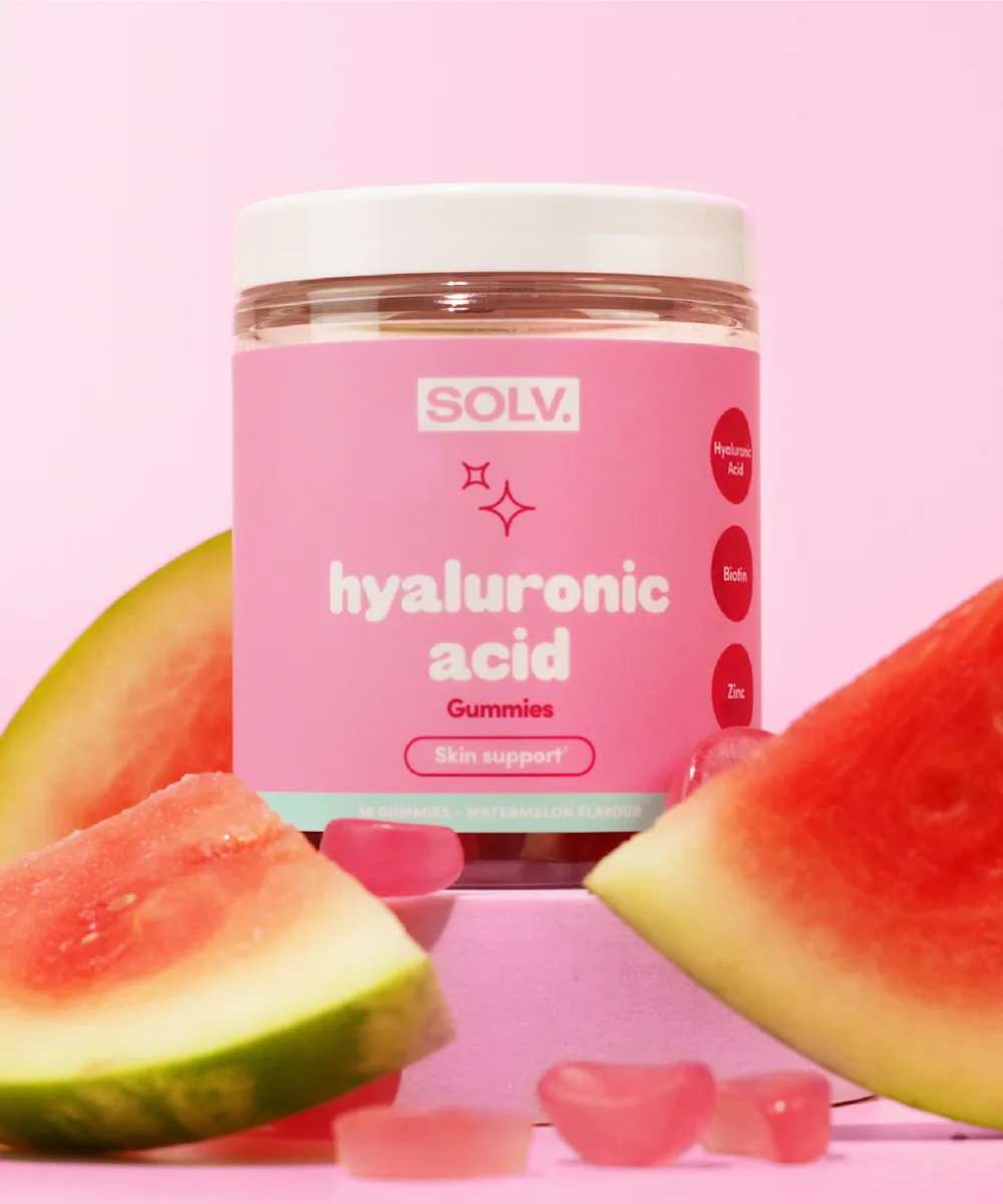 Apportez l’hydratation qu’elle mérite à votre peau en lui offrant les gommes à l’acide hyaluronique de SOLV. Renfermant de l’acide hyaluronique, un véritable aimant à hydratation, ces gommes contribuent à hydrater votre peau de l’intérieur en attirant l’hydratation et en la retenant pour repulper les ridules et les estomper, afin de favoriser une apparence saine. Elles sont également enrichies de biotine et de zinc qui favorisent la santé des cheveux, de la peau et des ongles, et possèdent des propriétés anti-inflammatoires et cicatrisantes. Dotées d’un délicieux arôme de pastèque, ces gommes sont un succulent moyen de vous hydrater de l’intérieur pour que ça se voit à l’extérieur.