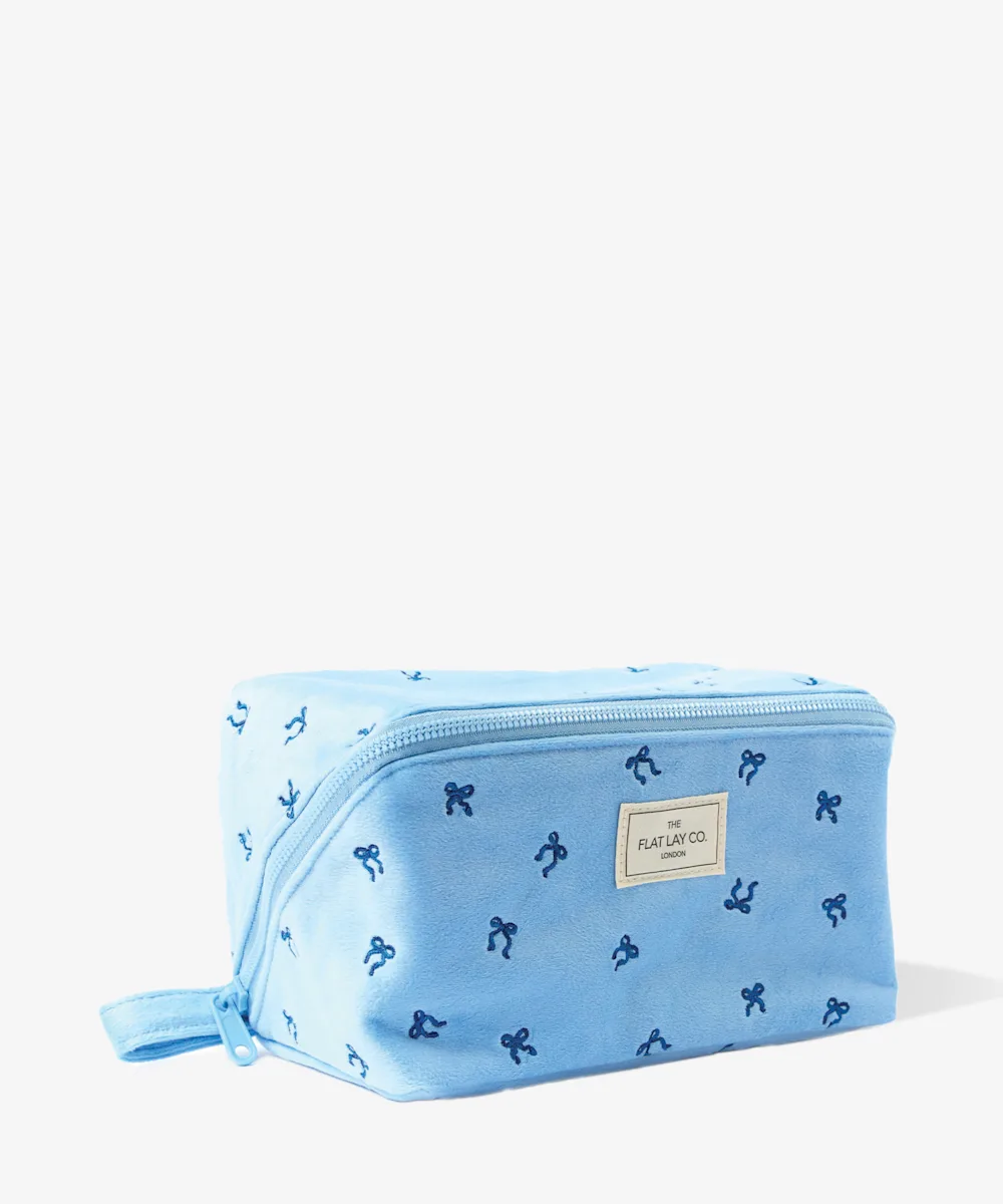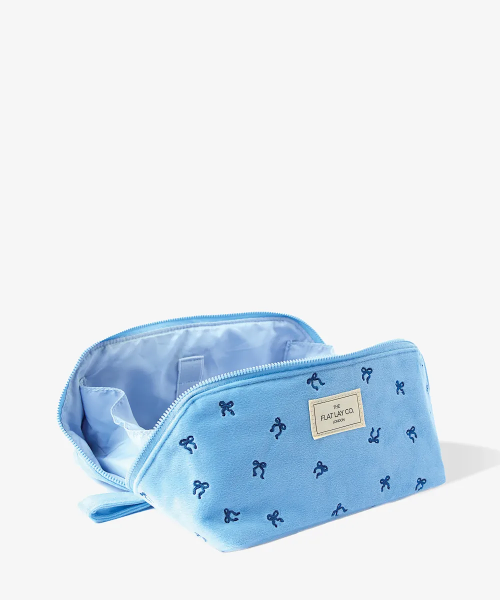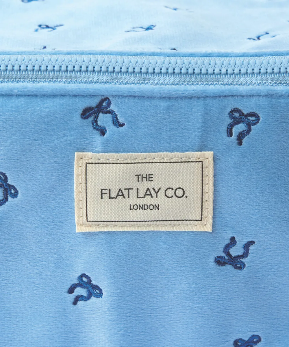 Flat Lay Makeup Box Bag - Ditsy Bows Blue Embroidered Velvet