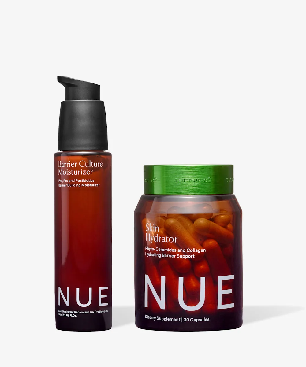 Offrez-vous une peau lisse et douce avec le coffret Hydrating Collection de The Nue Co. Il comprend un soin hydratant et des compléments pour la peau qui renforcent la barrière cutanée. Le soin hydratant Barrier Culture régénère la peau grâce à son complexe hydratant à base de céramides, de peptides, de niacinamide et de squalane qui protège la barrière cutanée, lisse les irrégularités du grain de la peau et retient durablement l’hydratation à l’intérieur de la peau. De leur côté, les compléments Skin Hydrator contribuent à renforcer la barrière lipidique naturelle de la peau et à stimuler sa production de collagène grâce à leur complexe à base d’acide hyaluronique hydratant et d’aloe vera apaisant qui nourrit la peau de l’intérieur.