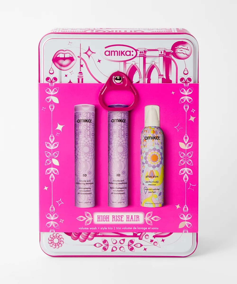 Gift the gift of great hair this festive season with the amika High Rise Volume Set. Take your hair to new heights with this three-piece gift set, featuring some of amika’s best volumising go-to products. Special developed to thicken and add volume to the hair, this set has it all. Inside you’ll find the 3D Volume & Thickening Shampooo & Conditioner, as well as the iconic Plus Size Perfect Body Mousse, all housed inside a super cute gift tin that you can use again and again.