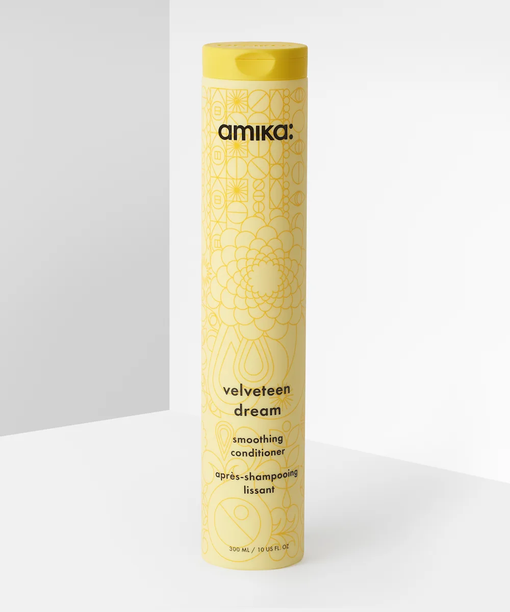 - After shampooing with the amika Velveteen Dream Smoothing Shampoo, massage a small amount from mid-lengths to ends.