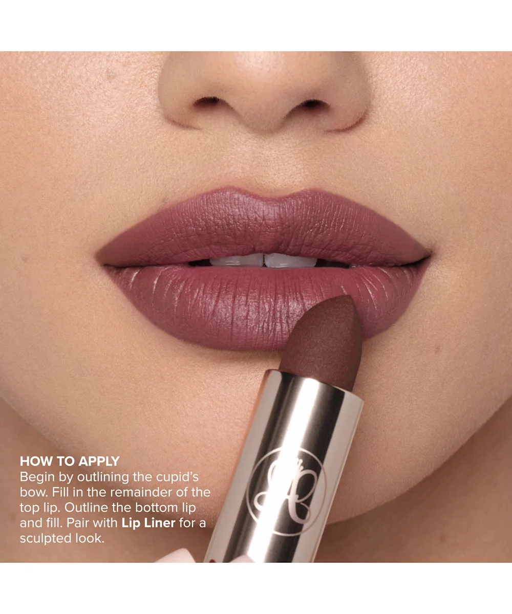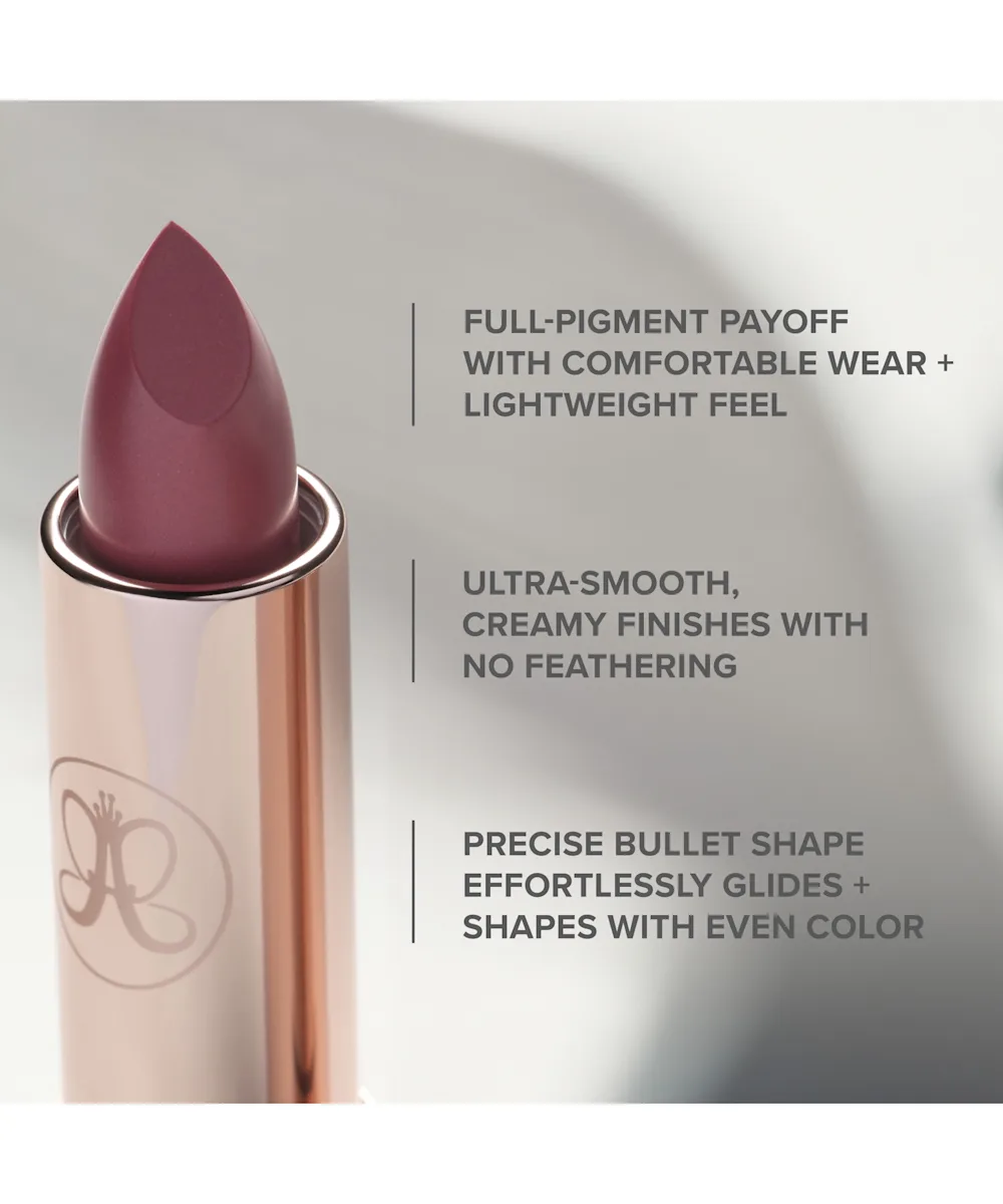 Gliding over the lips with a velvety smooth finish, each Anastasia Beverly Hills’ Matte & Satin Lipstick leaves nothing but a featherlight finish that lasts. The creamy, intense colours sit comfortably and evenly on the lips for long-lasting wearability that will give you something to pout about. The precise bullet shaped tip allows for control in defining the lip line and works to create effortlessly balanced application. Pick your fave shade and finish, or collect them all.