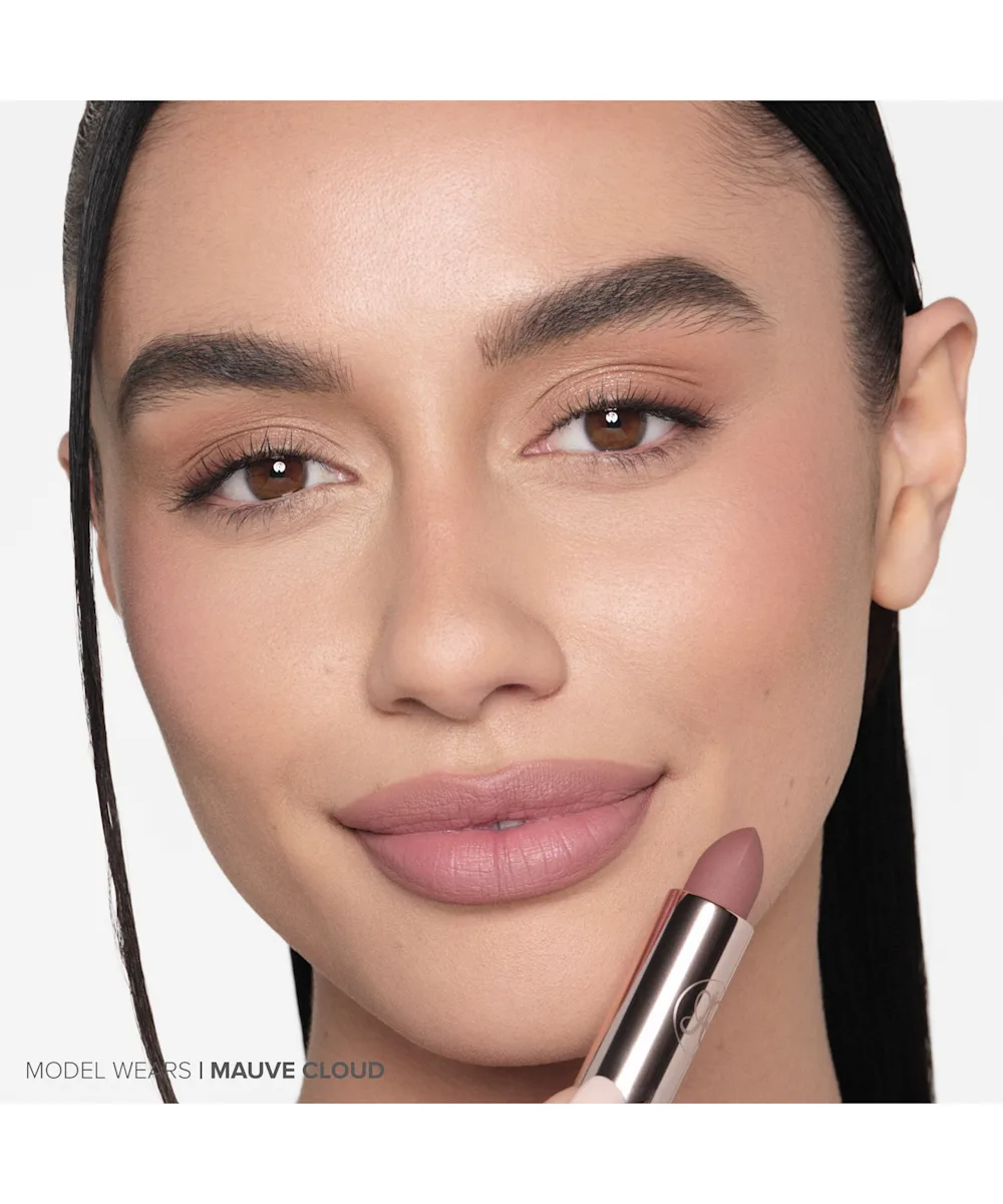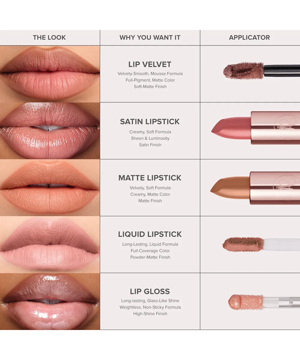 A smooth matte and satin lipstick.