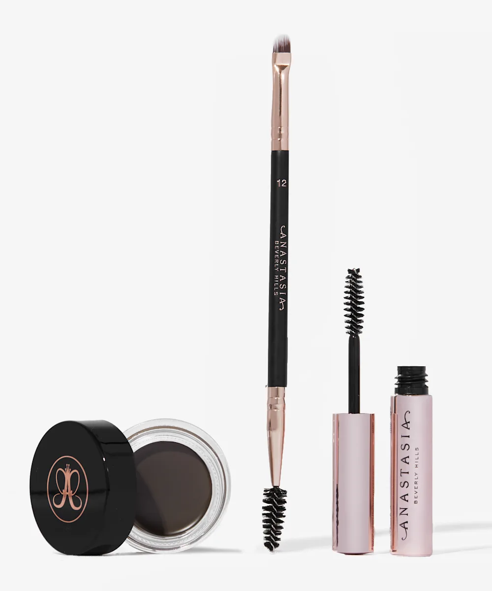 Boost your brow game with the Anastasia Beverly Hills Supreme Brow Kit. Inside this set you’ll find the Dipbrow Pomade, the Brow Freeze gel, and a brow brush, that work together to help you create perfectly sculpted, long-lasting, natural eyebrows easily.