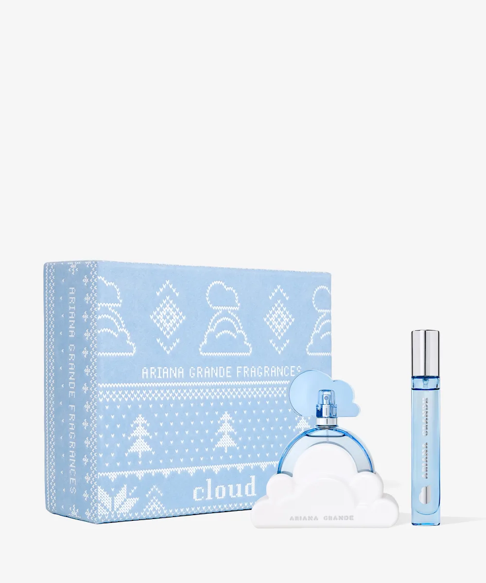 Surround yourself with warmth with the Cloud Gift Set from Ariana Grande. Featuring the uplifting, fruity-floral Cloud Eau de Parfum alongside a travel-friendly Spray Pen, this duo is perfect for everyday wear or gifting. With top notes of lavender blossom, juicy pear, and bergamot, balanced by crème de coconut, praline, and vanilla orchid, and finished with sensual musks and creamy woods, this gourmand fragrance inspires happiness and positivity in every spritz.