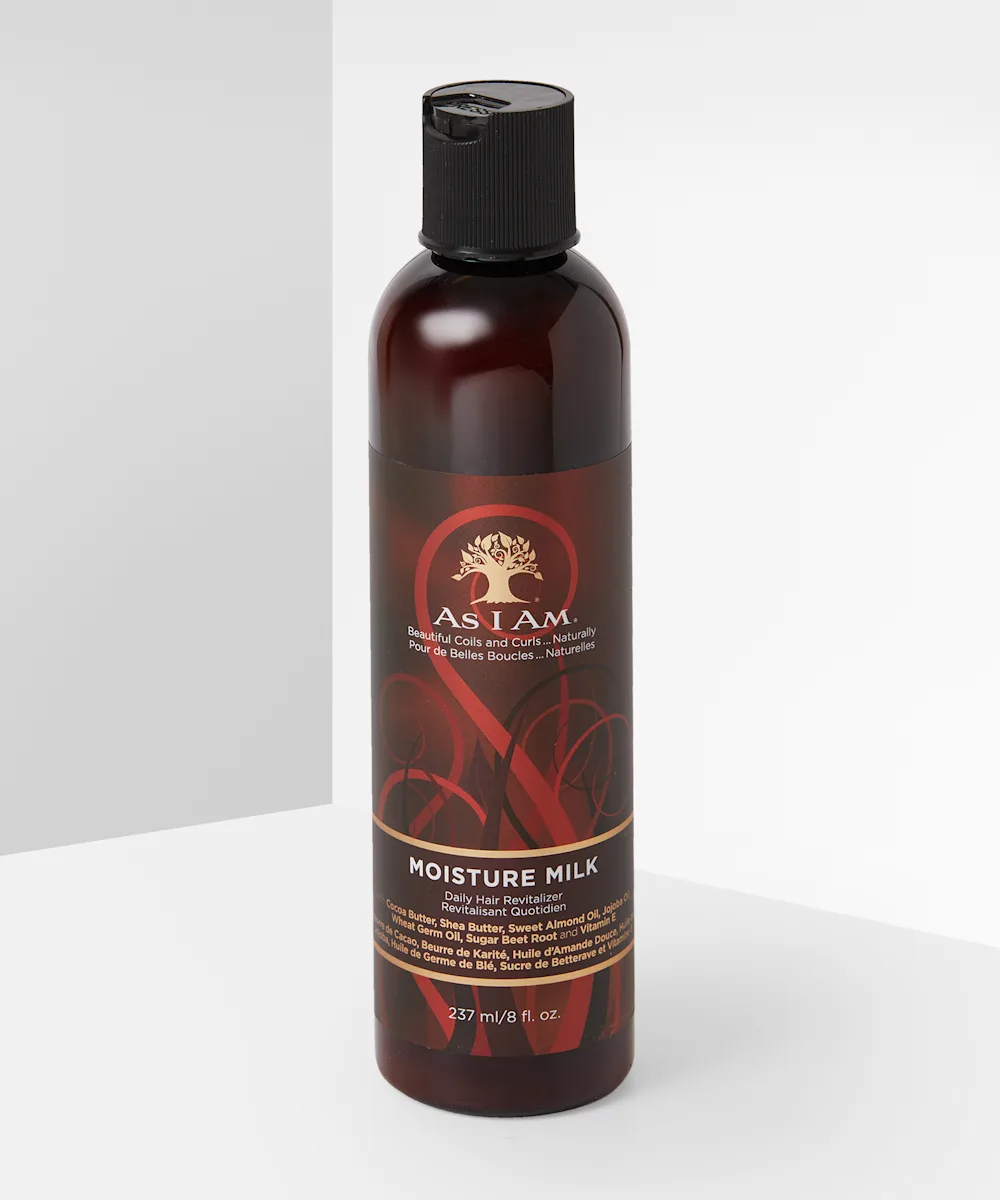 For those days when hair needs a boost of TLC, reach for As I Am’s Moisture Milk. Designed to add moisture to natural coils and curls, the formula is packed with carefully selected, loving ingredients to help hair look and feel its best. The formula also helps to improve hair’s manageability by deeply hydrating and nourishing, leaving the hair with softness and shine.