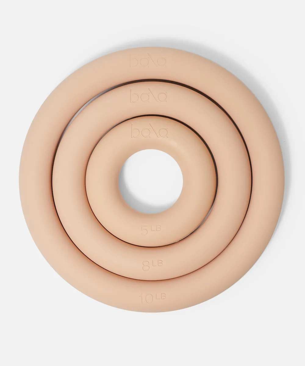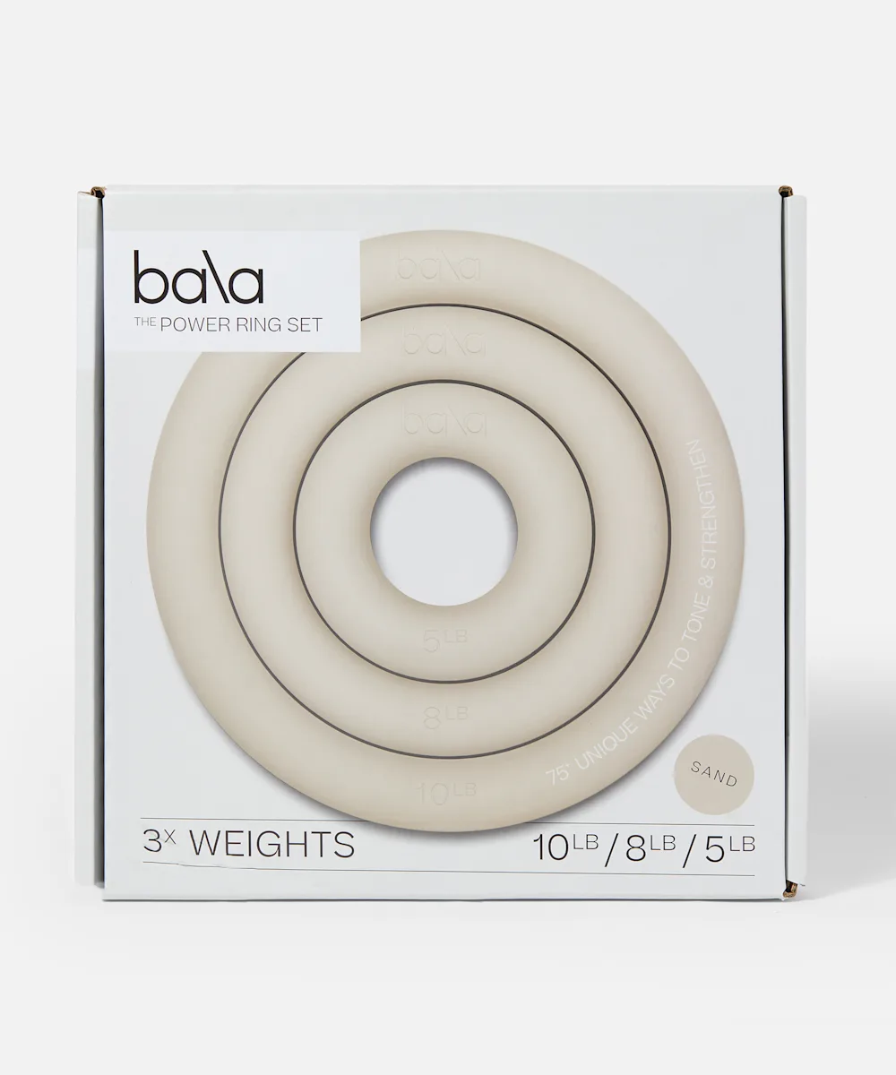 Upgrade your full body workouts with The Power Ring Set from Bala. The set of 10lb, 8lb and 5lb weighted rings have been designed to help you increase strength, agility, endurance, and balance, and can be used for more than 75 unique movements. Made using recycled stainless steel wrapped in baby-soft silicone, The Power Ring Set has even weight distribution and an ergonomic design for a balanced, user-friendly workout.