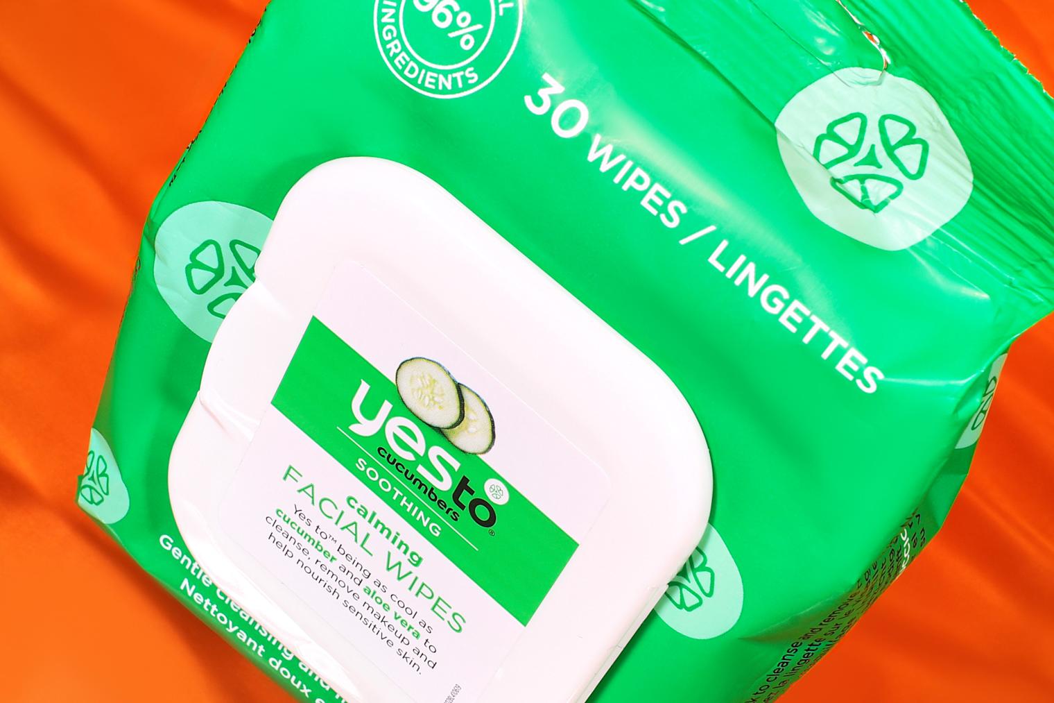 • Yes To Cucumbers Soothing Facial Wipes (full sized) - A pack of 30 hypoallergenic disposable cleansing wipes.