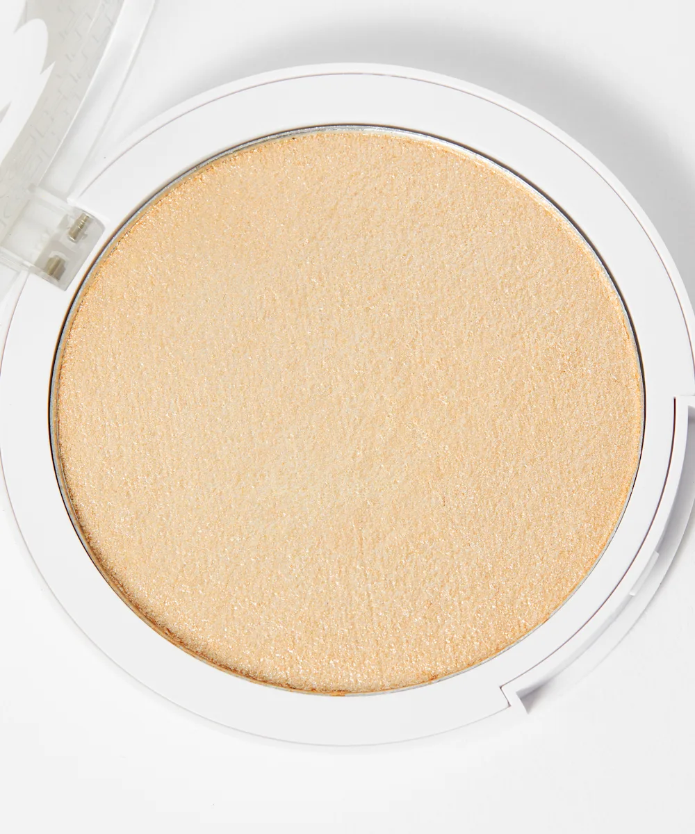 A champagne shimmer powder highlighter for instant radiance that all summer looks deserve.