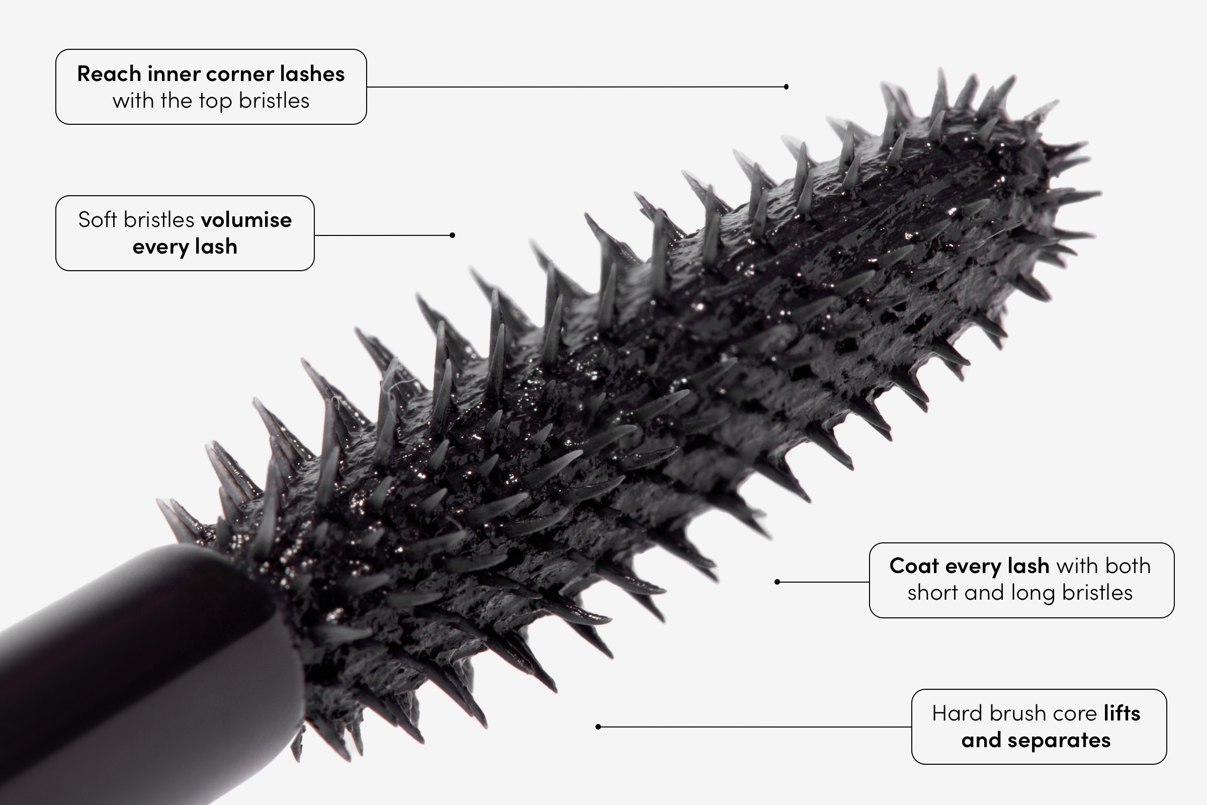 - Apply 2-3 coats to the lashes from root to tip.
