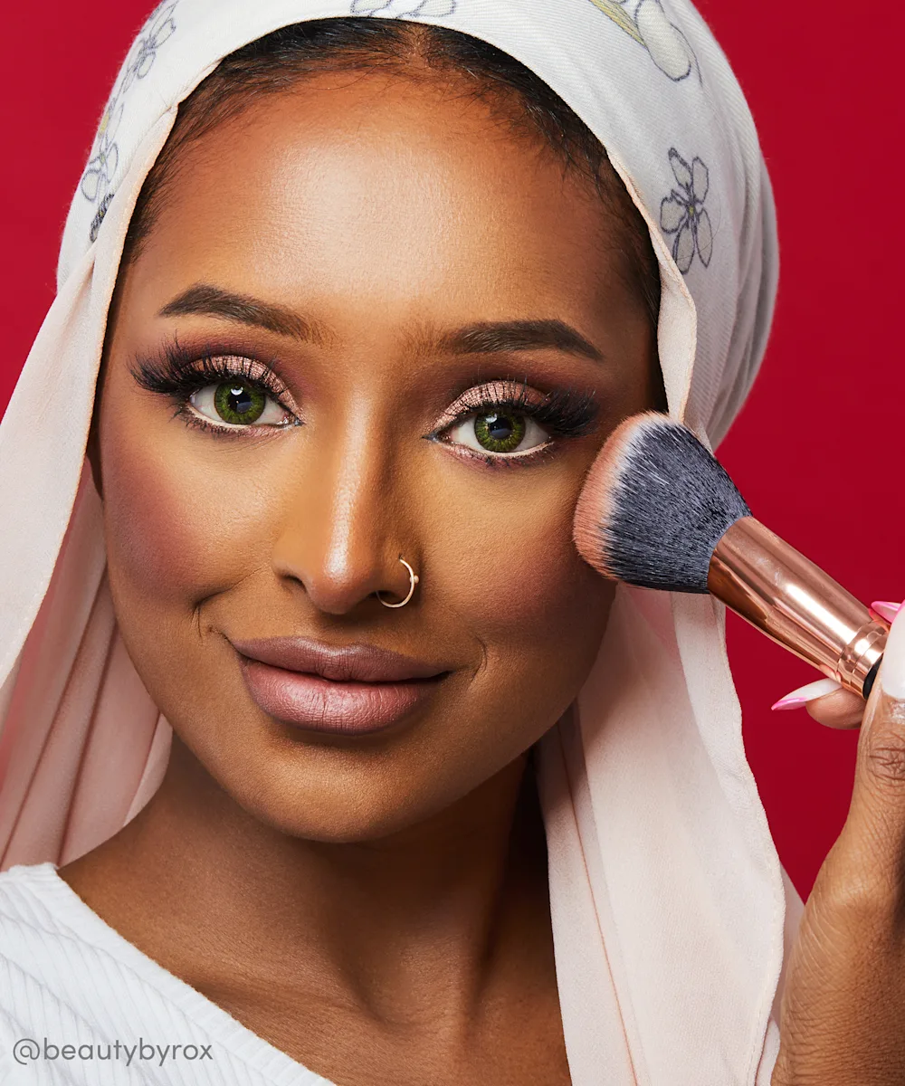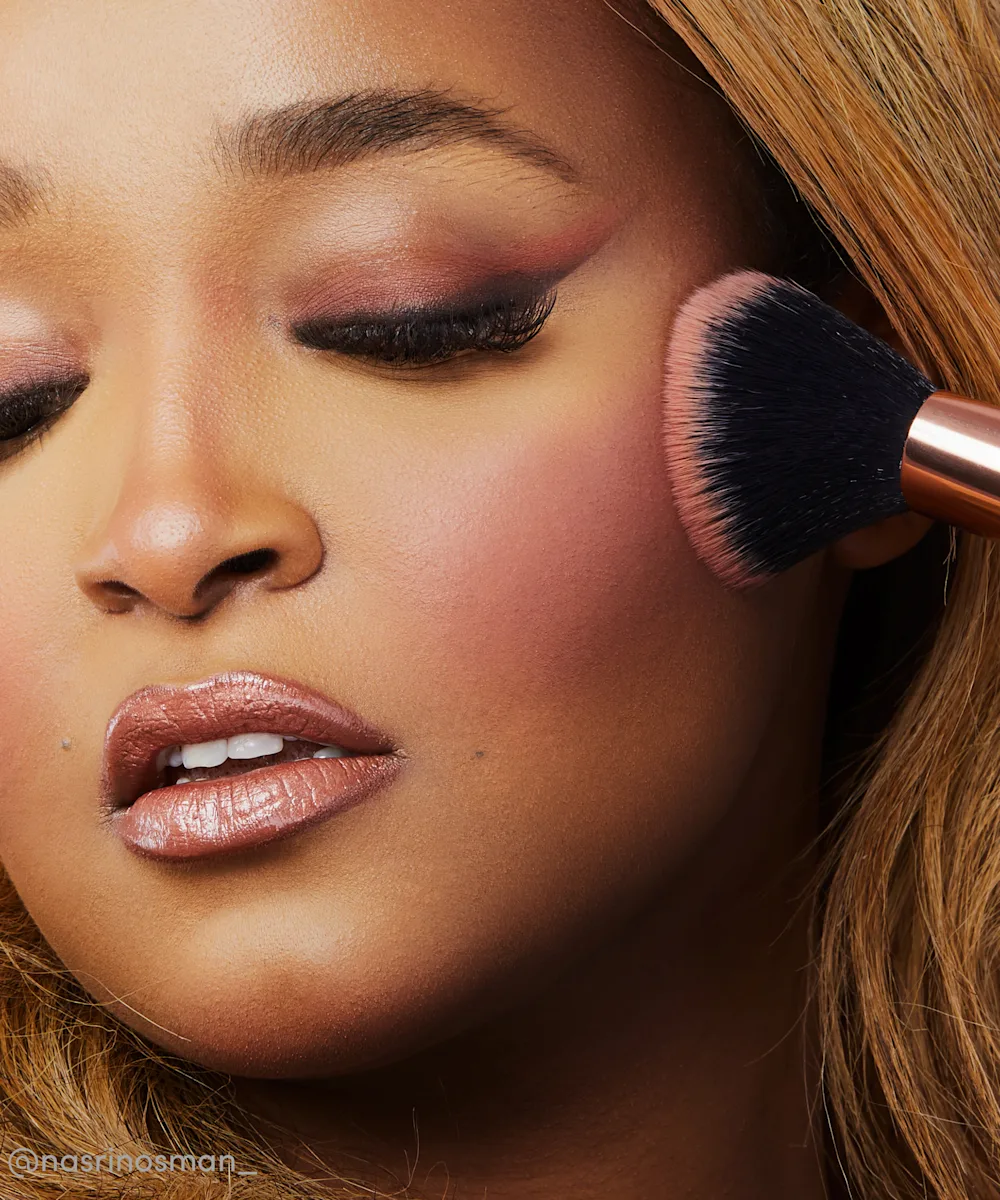 - Dust over the apples of the cheeks with a fluffy brush.
