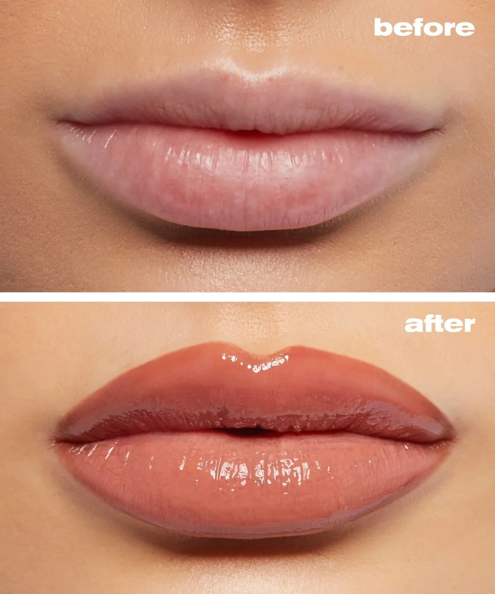- By BEAUTY BAY Super Plump Lip Gloss – A super glossy lip infused with vitamin E, avocado oil, and plumping agents to visibly plump and moisturise the lips.
