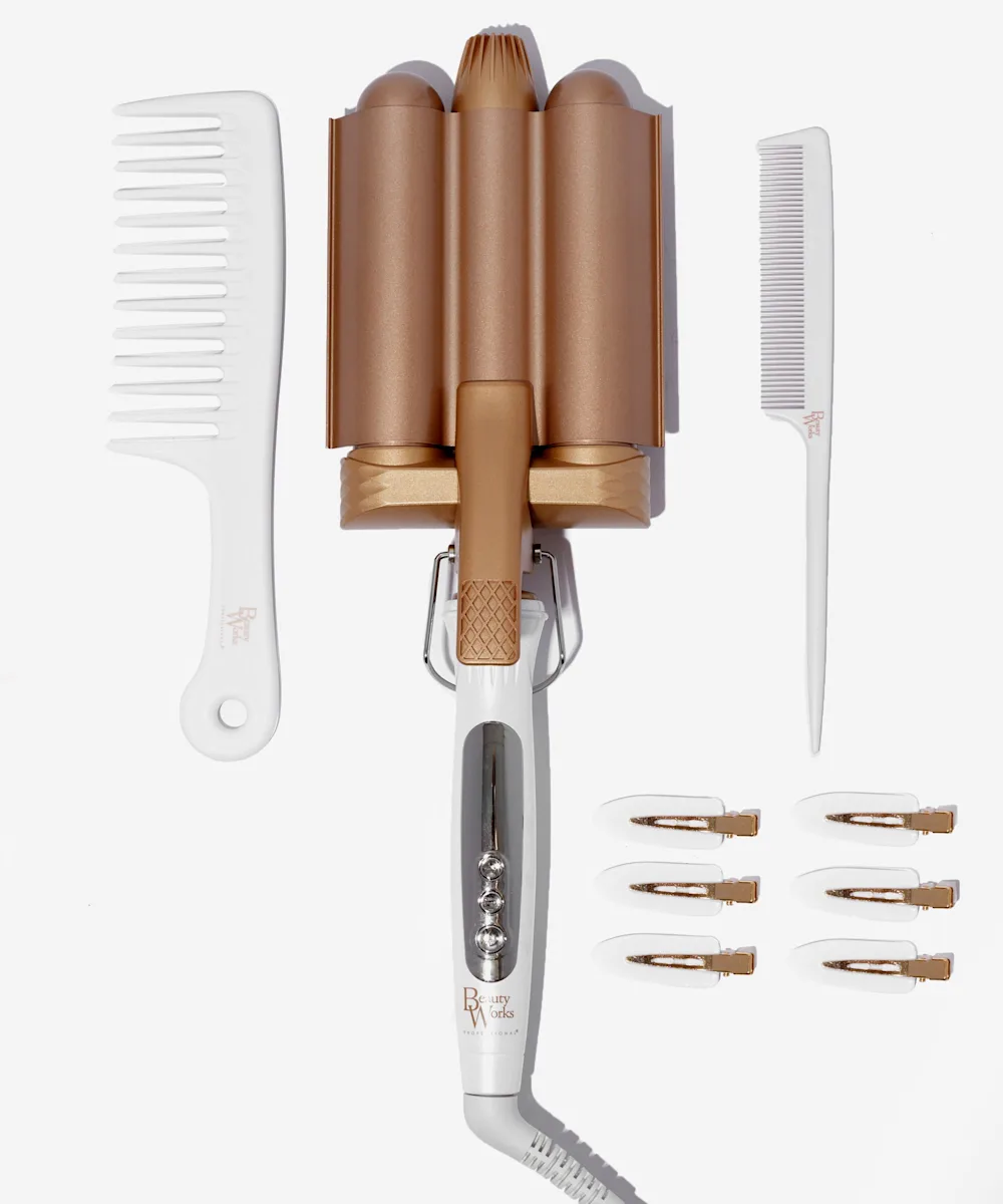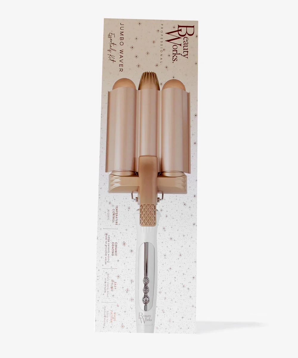 Give the gift of great hair with the Beauty Works Jumbo Waver Gift Set. Inside this set you’ll find the iconic Jumbo Waver to create stunning beachy waves, a set of setting clips, a tail comb for effortless sectioning, a wave comb for brushing out your style and a heat resistant bag for on-the-go. Buy now, your hair will thank us later.