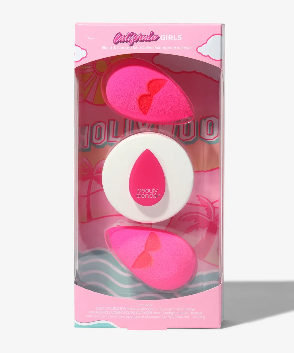 Transport yourself to where Beautyblender began with the California Girls Blend & Cleanse Set. Inside this set you’ll find not one but two original Beautyblenders plus the germ-fighting Blendercleanser to keep your tools clean and free of bacteria.