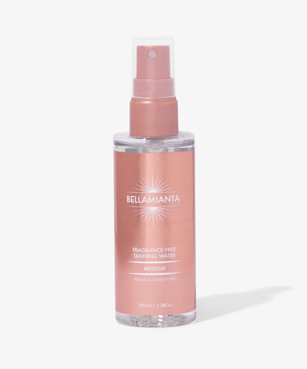 Bellamianta’s Fragrance Free Tanning Water is your new mist-have. This spray is committed to delivering immense hydration, a gorgeous glow, and blue light protection, in a few spritzes and in a couple of hours. With a hyaluronic acid, niacinamide, and vitamin B and E infused formula, this product allows you to spray your way to nourished skin, with barely visible pores and a radiant, but bronze complexion.