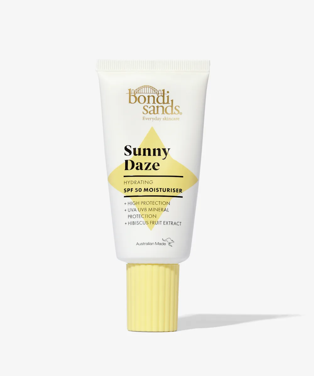 Treat your complexion to the Bondi Sands Sunny Daze SPF 50 Moisturiser. This SPF 50 moisturiser provides protection against UVA and UVB sun exposure without clogging the pores thanks to a vitamin E, wild hibiscus extract, and zinc oxide-infused formula. Featuring a universal tint, this moisturiser absorbs into the skin quickly with an invisible finish to deliver 72 hours of hydration.