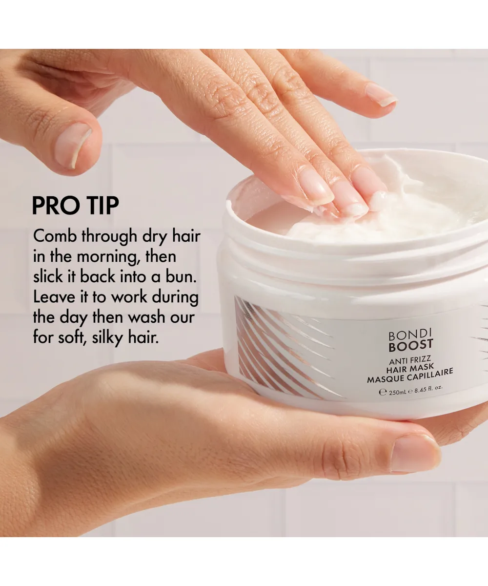 Fight frizz with the BondiBoost Anti Frizz Hair Mask. Enriched with a powerful blend of smoothing ingredients including ceramides, antioxidants, and vitamins, this hair mask tames stray strands and defends against frizz caused by dryness and humidity. Restoring hair health without weighing your locks down or leaving them feeling greasy, this is a slick hair must-have.