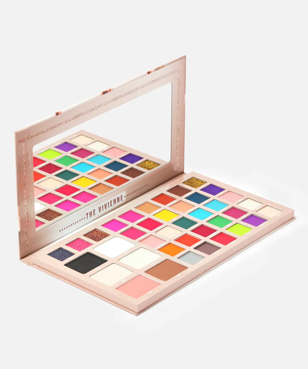 - 33 eyeshadows including 25 matte shades, 7 shimmer and 1 pressed glitter