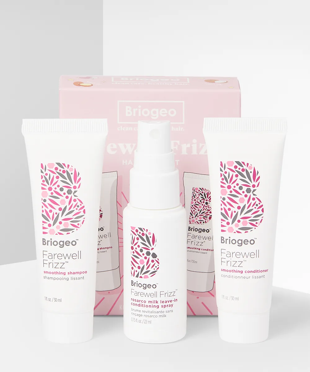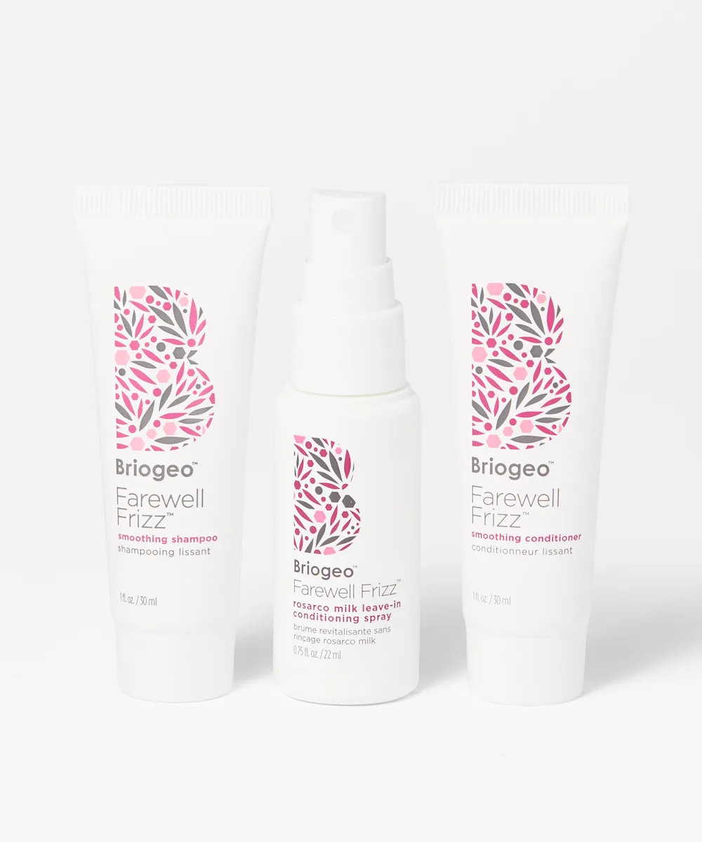 - Farewell Frizz Smoothing Shampoo, 30ml - A restorative shampoo to hydrate the hair and repair damage with a blend of rosehip, argan, and coconut oils.