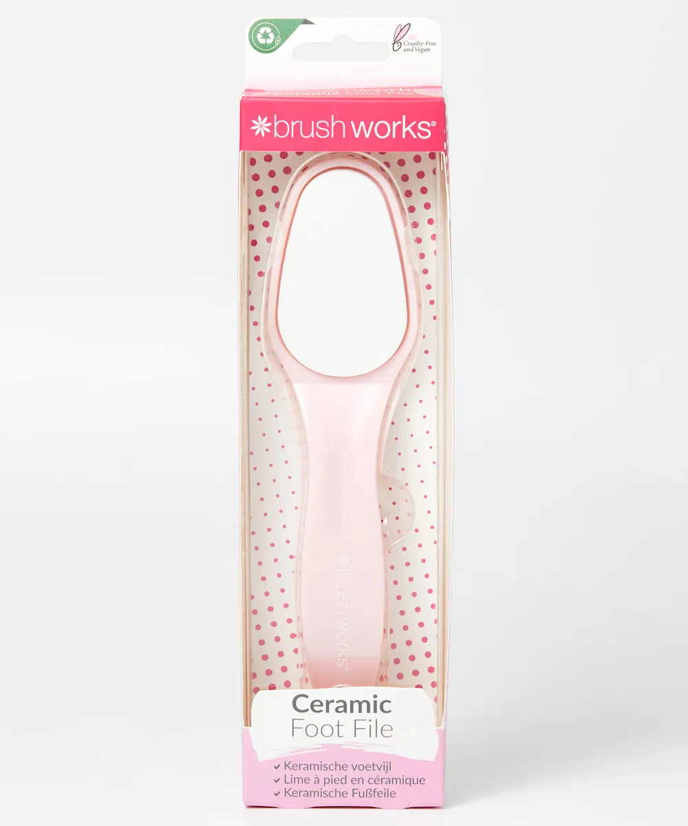 Soften and smooth your feet in minutes with the Brushworks Ceramic Foot File. The ceramic crystal boards help to buff away any dead skin cells and hardened skin, leaving the feet fresh and prepped for hydration.
