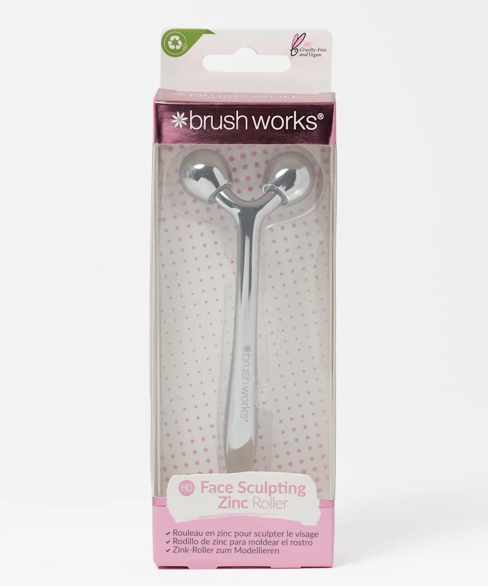 Cool up your kit with the Brushworks Face Sculpting Zinc Roller. Tone, firm and brighten your complexion with this cool zinc roller that gives your face a deep kneading massage while improving circulation. Buy now, thank us later.