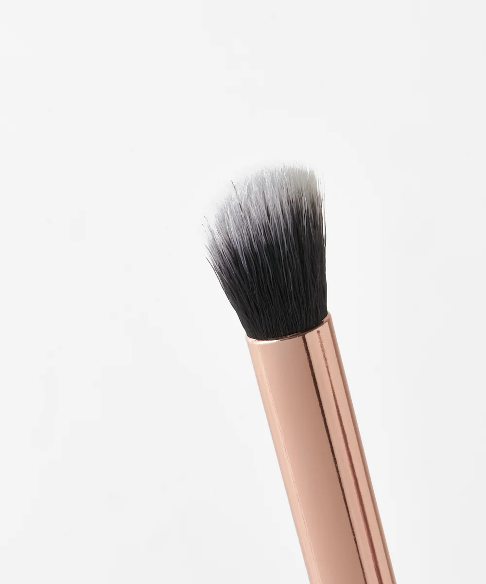 - Use the contour end to blend liquid and powder contour products onto the hollows of the cheeks, tops of the forehead, and jawline.