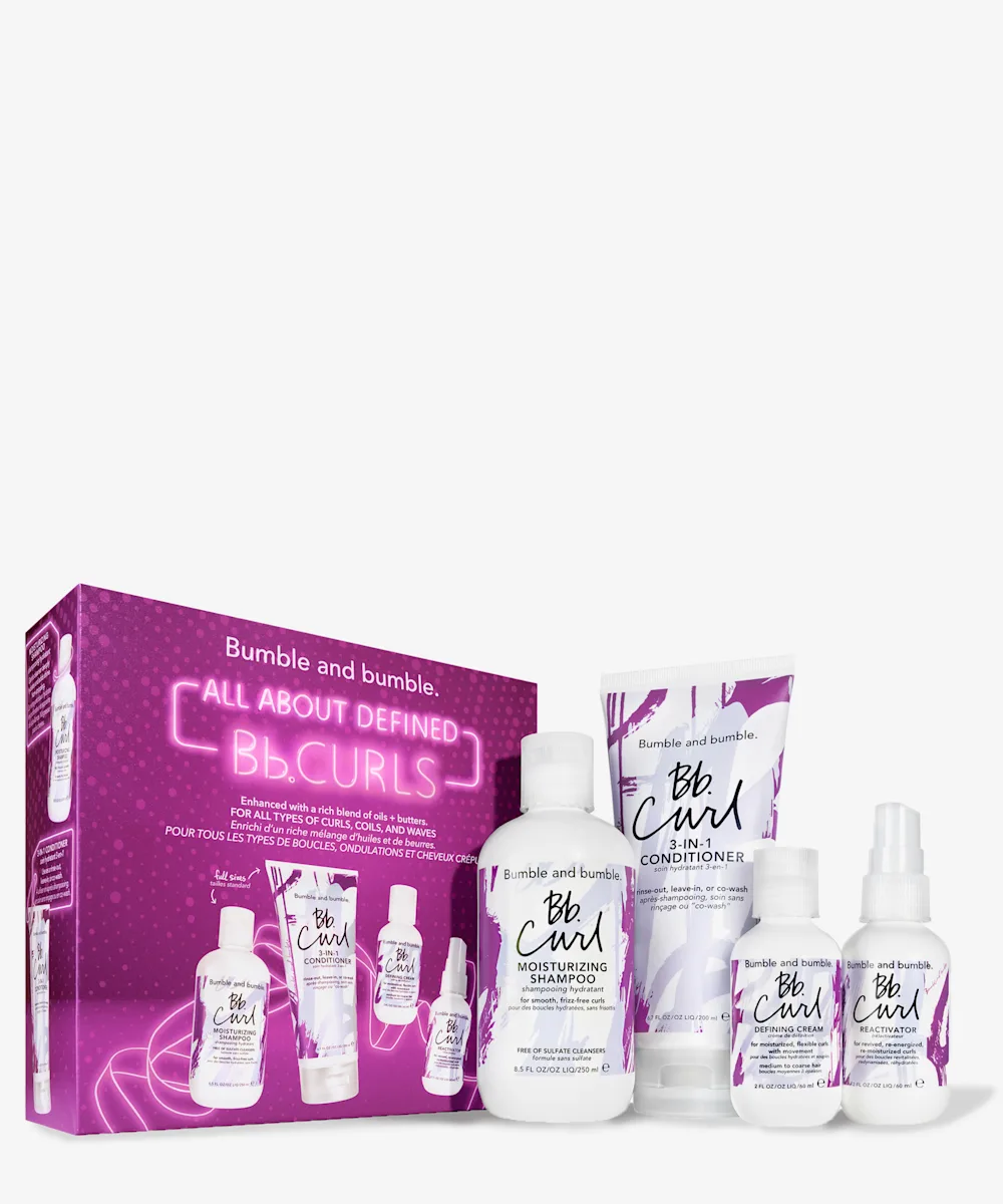 Customise your curl routine with the Bumble and bumble All About Defined Curls Set. Each step is enhanced with a rich blend of butters and oils, starting with a gently moisturising, softening and frizz-free shampoo and 3-in-1 conditioner, that can be used as a rinse-out, leave-in or co wash. Also includes is a protective and easy-to-use defining cream, plus a super-moisturising reactivator , to helps revive your curls after wash day. Buy now, thank us later.