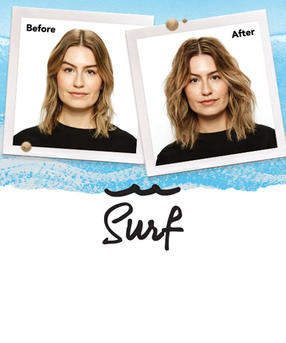 - For polished waves, use a curling iron on dry hair, then finish with Surf Wave Foam to define texture.