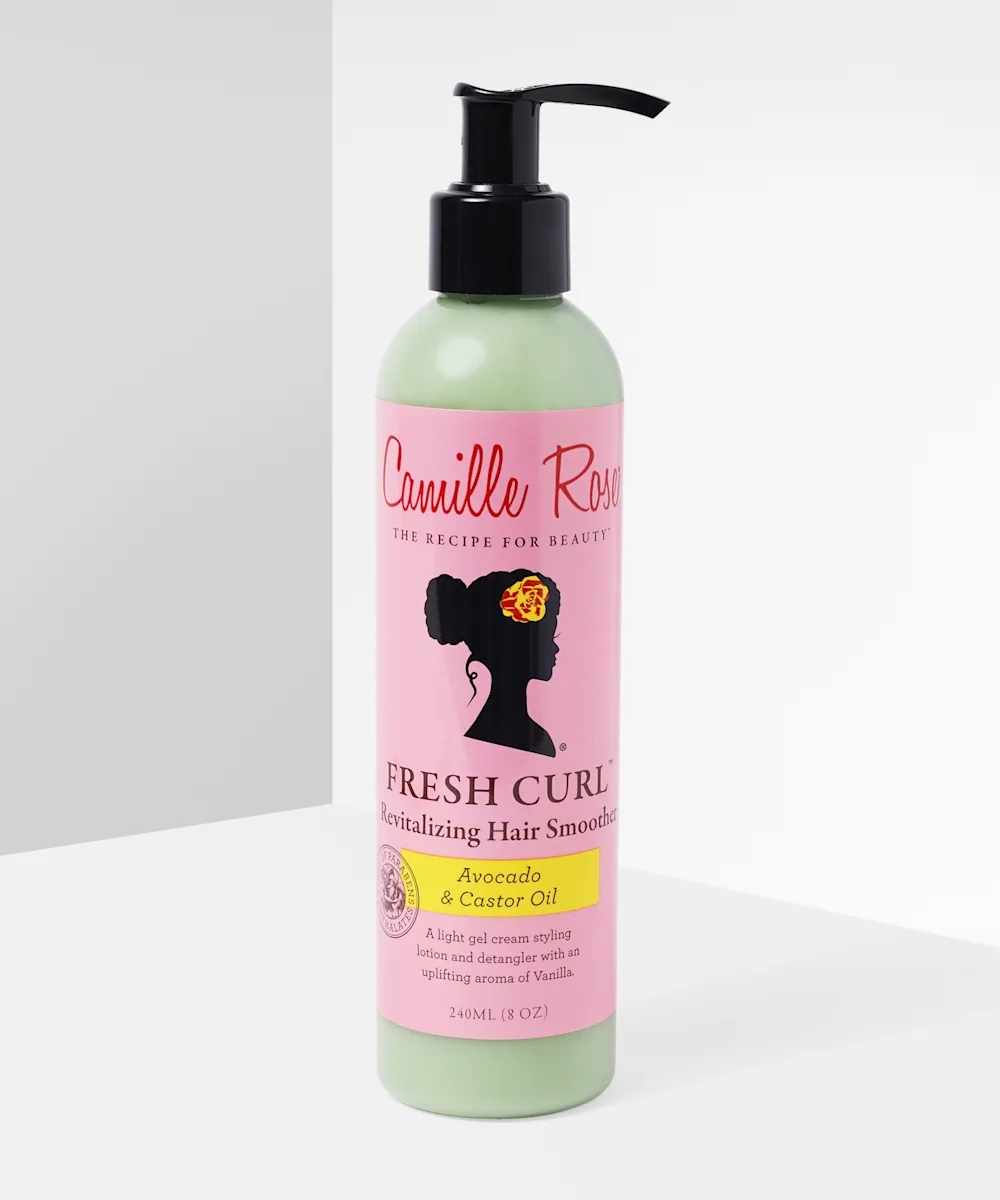 Here to help manage, style, and nourish the hair, Camille Rose's Fresh Curl Revitalising Hair Smoother is the one for creating good hair days that last. Formulated with organic avocado and castor seed oils to revitalize curls, plus ripe peach guava to refresh. Curls are left full of life, softness, and shine.