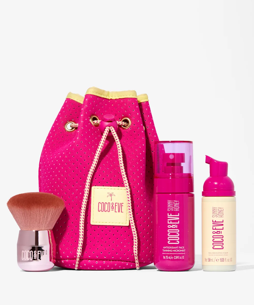 Master the art of a flawless faux glow with the Coco & Eve Tan Masters Kit. This three-piece medium tanning set features a face tanning mist, medium bronzing foam, and a face kabuki brush that let you create that perfect sunkissed, healthy glow to the skin, without the risk of creating a streaky tan. Get ready for your best tan yet…