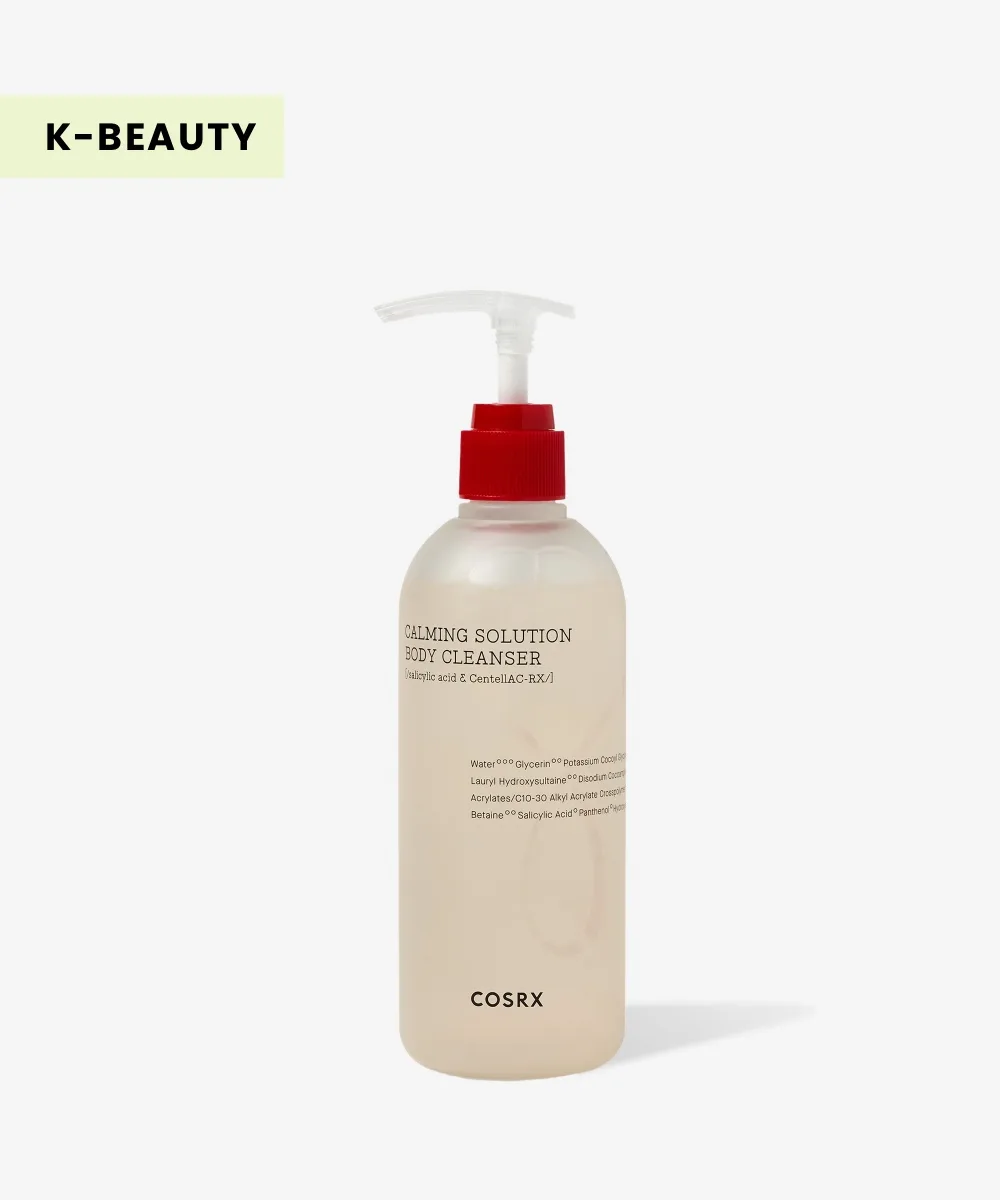 Upgrade your shower essentials with COSRX’s AC Calming Solution Body Cleanser. Designed to help prevent acne on the body, the fresh and cooling formula helps to calm chestne and backne for calm, clear skin. The low pH (4.5-5.5) cleanser has been formulated with salicylic acid to exfoliate and eliminate breakouts, menthol to cool and soothe skin, and CentellAC-RX Complex to soothe irritated skin leaving it feeling refreshed and invigorated.