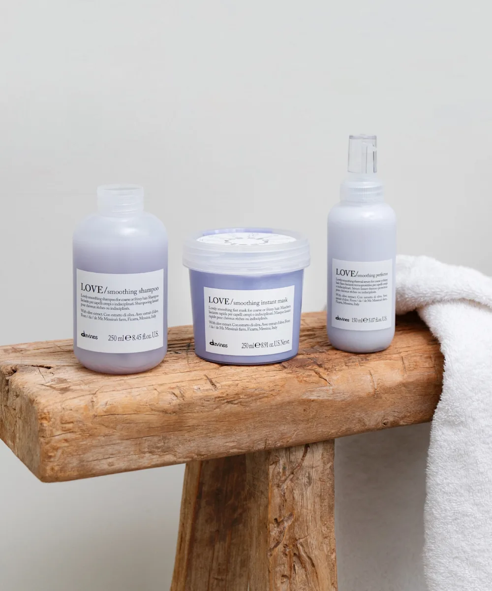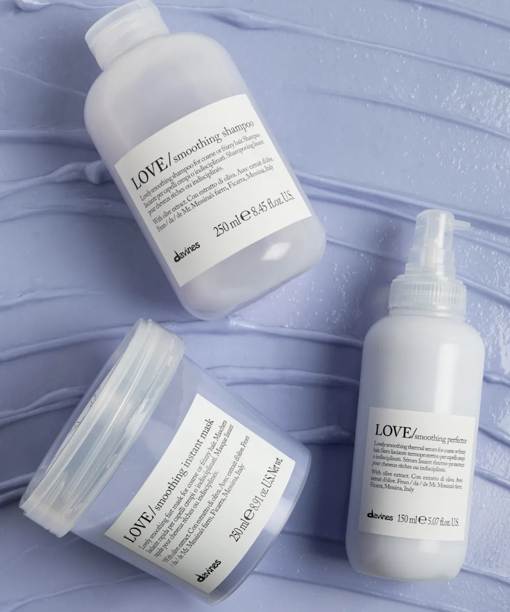 For good hair days, every day, reach for the Davines Love Smoothing Perfector. This anti-frizz serum provides heat protection and control in a lightweight and creamy texture, that protects the hair from heat and makes styling easier without leaving any residue.