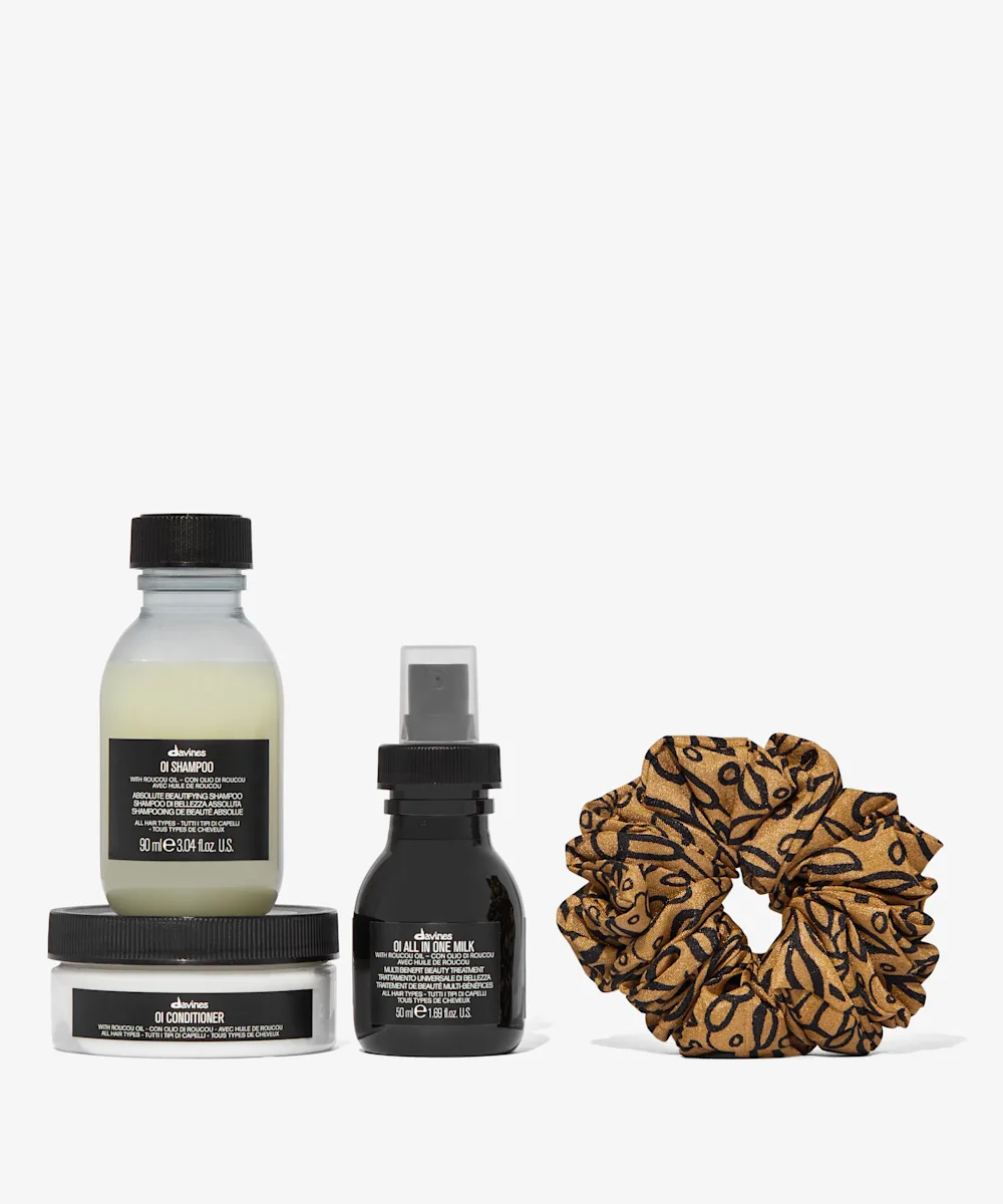 Achieve soft and voluminous hair by hauling Davines’ OI Holiday Bundle Box. In this bundle you’ll find three travel-friendly, roucou oil-rich haircare products that work well with all hair types to enhance shine, detangle, defrizz, and nourish the hair. This includes the OI Shampoo, a softening shampoo, that helps to detangle, strengthen, and protect the hair, while the OI Conditioner, a rich and buttery conditioner works to nourish the hair and provide antioxidant protection from UV rays. Finally the OI All-in-One Milk, a leave-in multifunction treatment spray, helps to soften, detangle, defrizz, and protect the hair. Complete with a scrunchie ethically hand-made from sari upcycling in India, this bundle belongs in your next haul!
